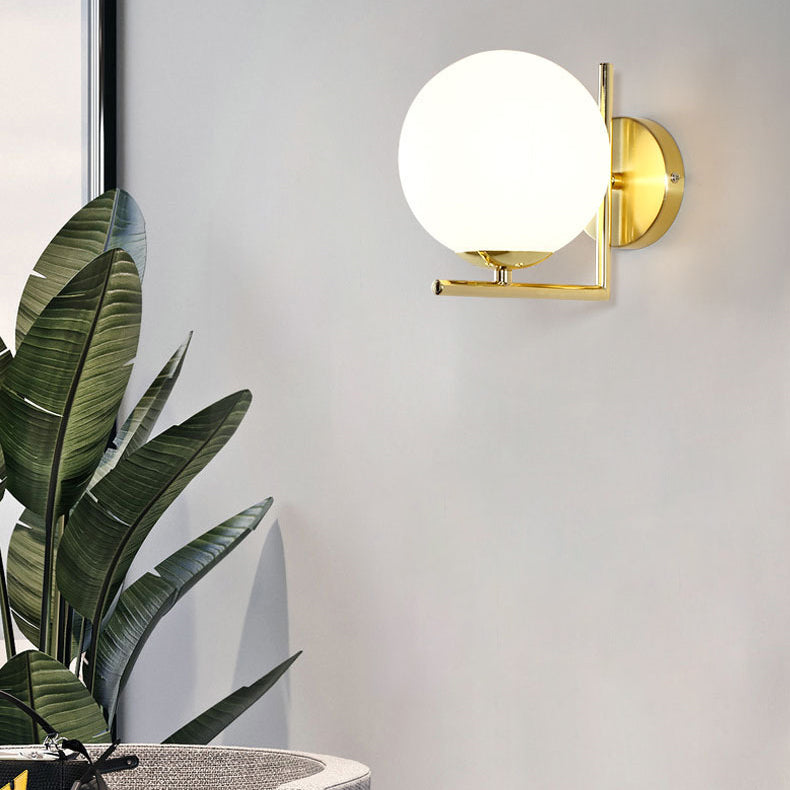 مصباح حائط عصري من المعدن والزجاج بتصميم نورديك، مزود بمصباح واحد، بجانب السرير