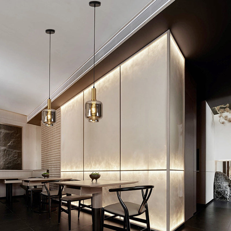ارتقِ بمساحتك مع هذا المصباح المعلق العصري على الطراز الاسكندنافي، بغطاء أسطواني من الزجاج المنفوخ يدويًا بلون رمادي دخاني وإطار معدني أنيق. مثالي لغرف الطعام أو غرف النوم أو غرف المعيشة، يضفي هذا المصباح الفردي لمسةً من الأناقة البسيطة وجاذبيةً أنيقةً على أي ديكور داخلي.
