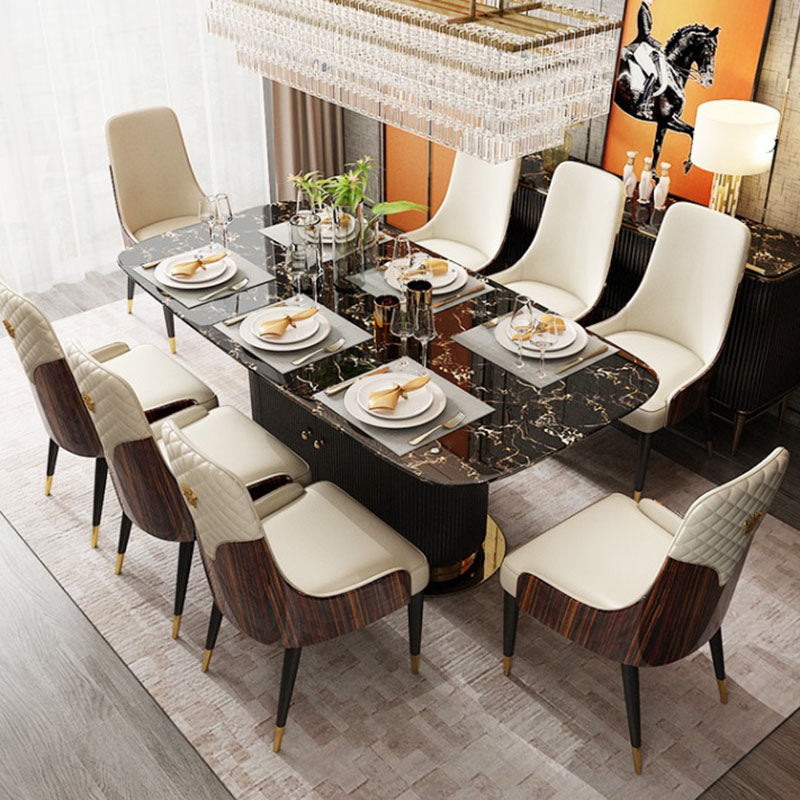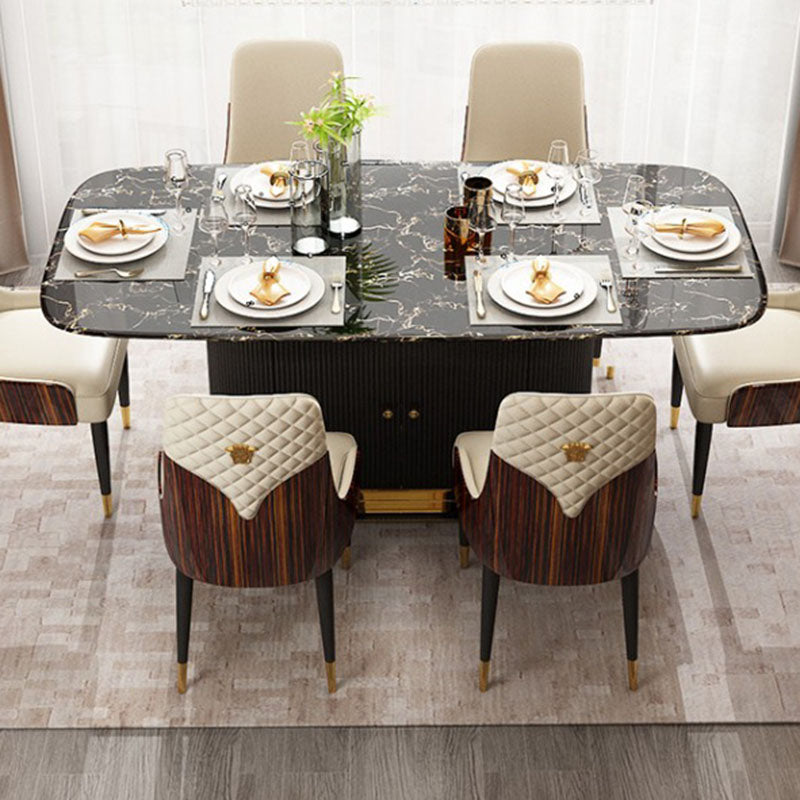 Contemporary Nordic Microfiber Leather Wood Stainless Steel Sponge Dining Chair Backrest Armrest For Dining Room