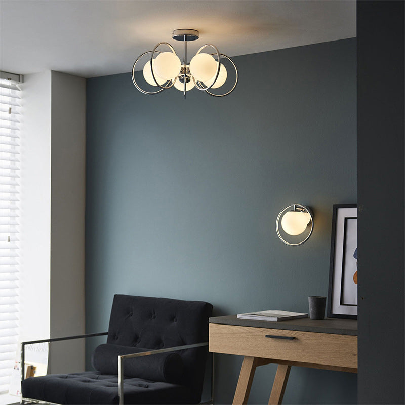 ثريا معاصرة من الحديد والزجاج بتصميم دائري نورديك، 3/5 ضوء لغرفة المعيشة
