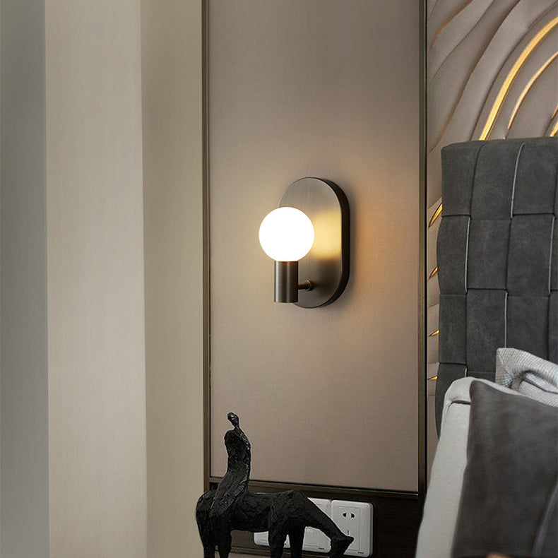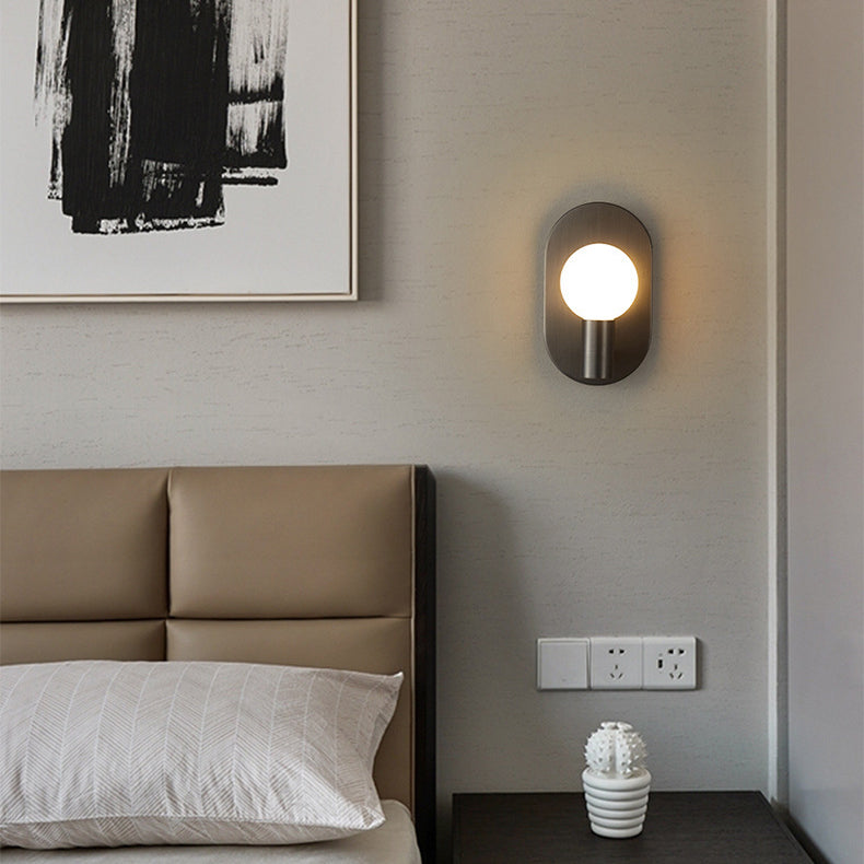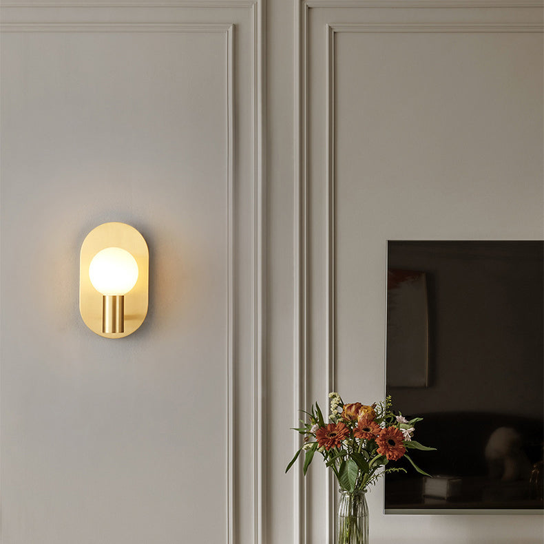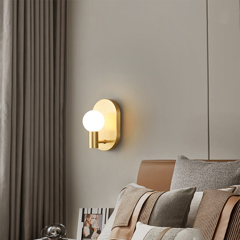 مصباح حائط معاصر على شكل كرة زجاجية بيضاوية من النحاس بتصميم نورديك، مزود بمصباح واحد، مناسب للممر
