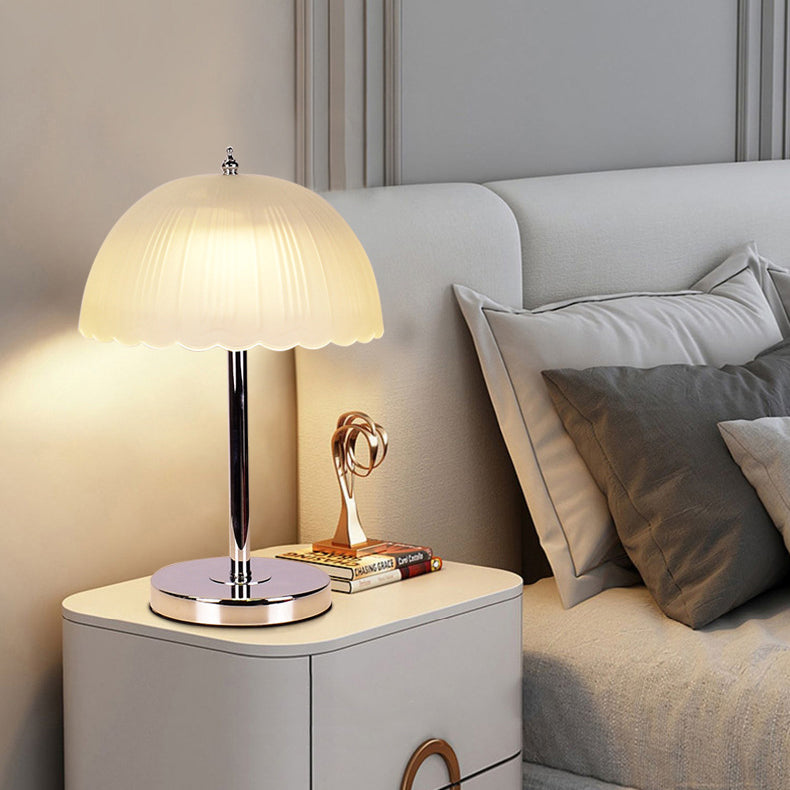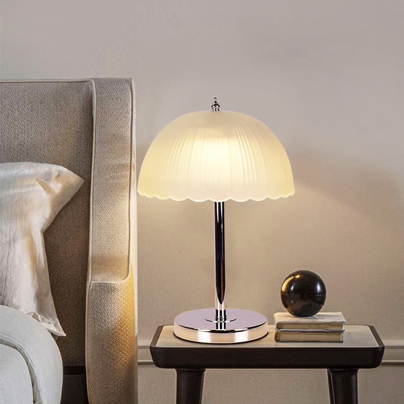 Contemporary Nordic Petal Dome Frosted Glass 1-Light Table Lamp For Bedroom