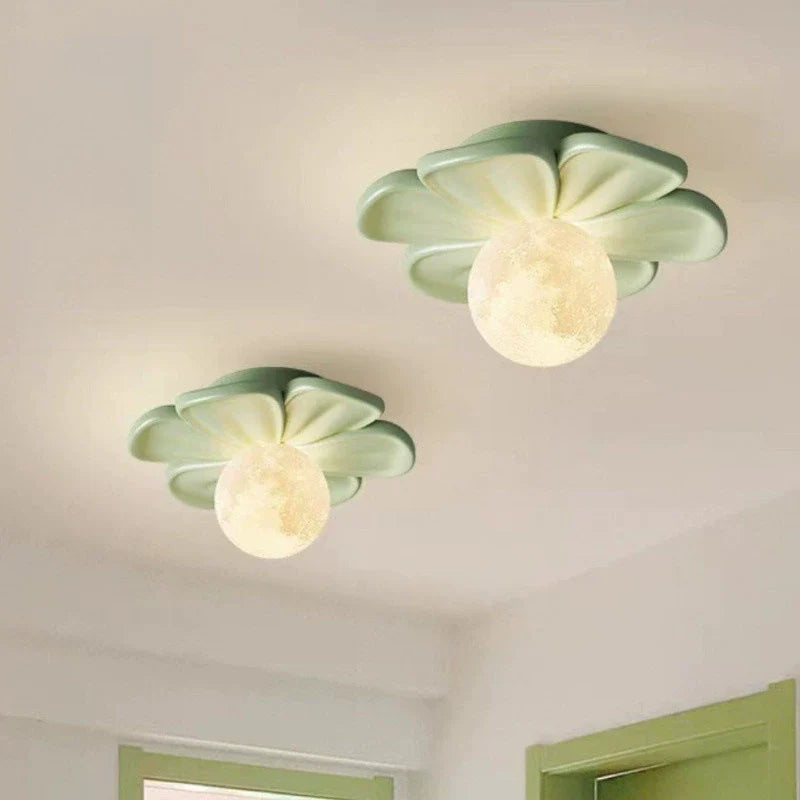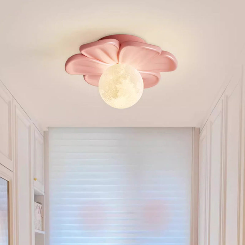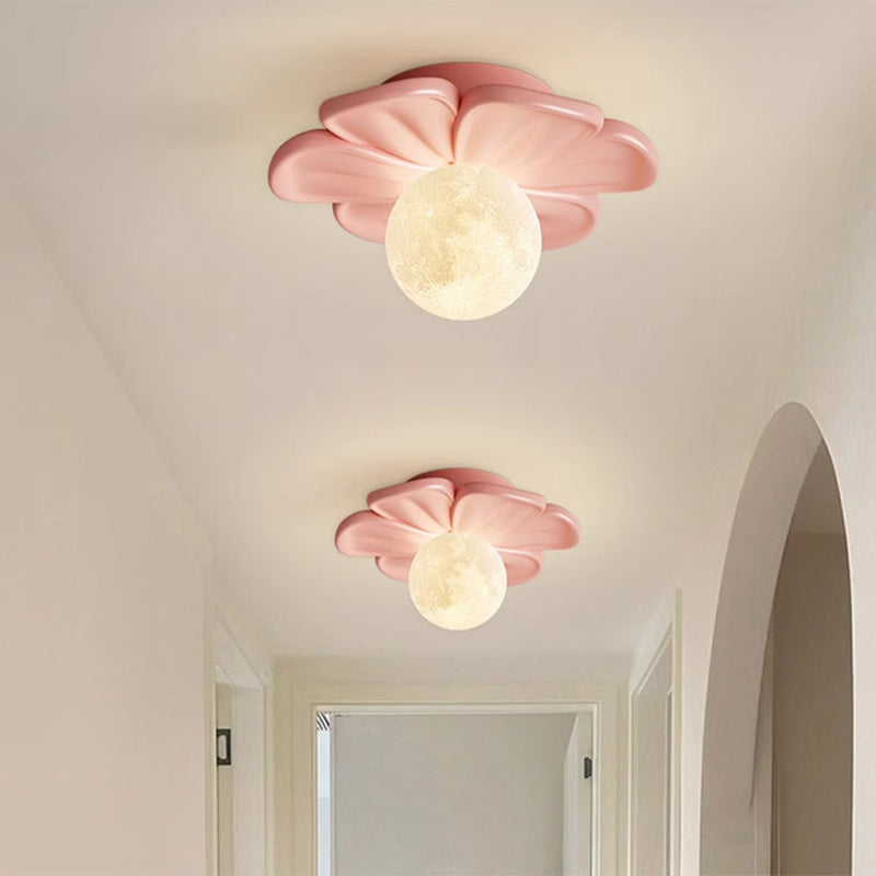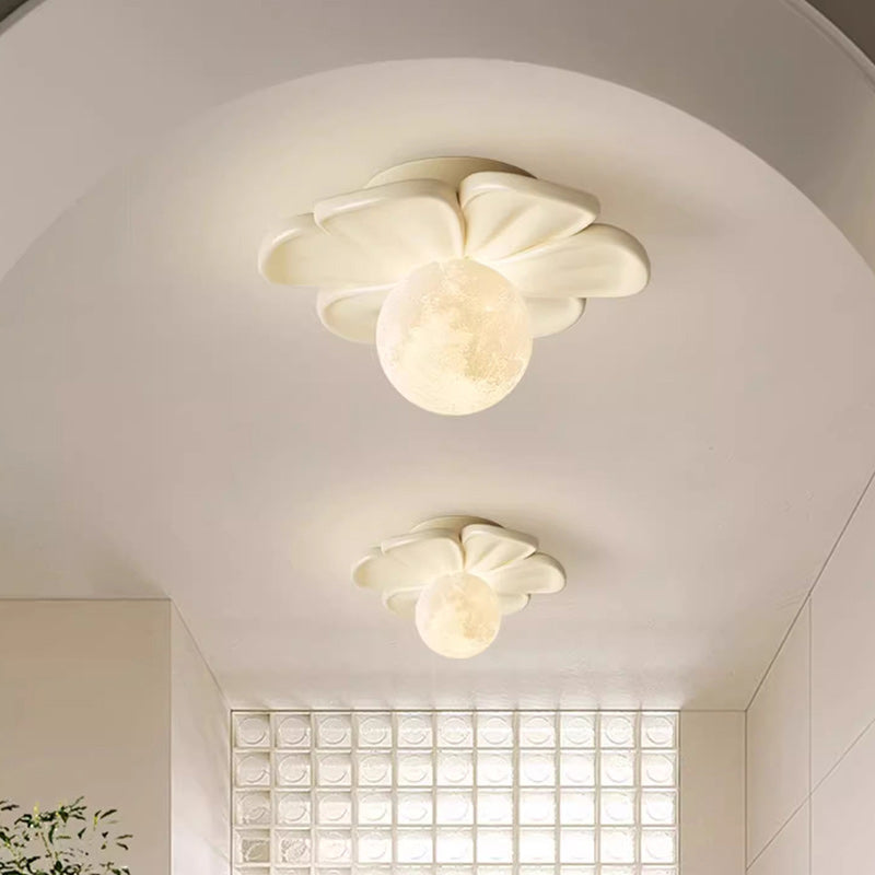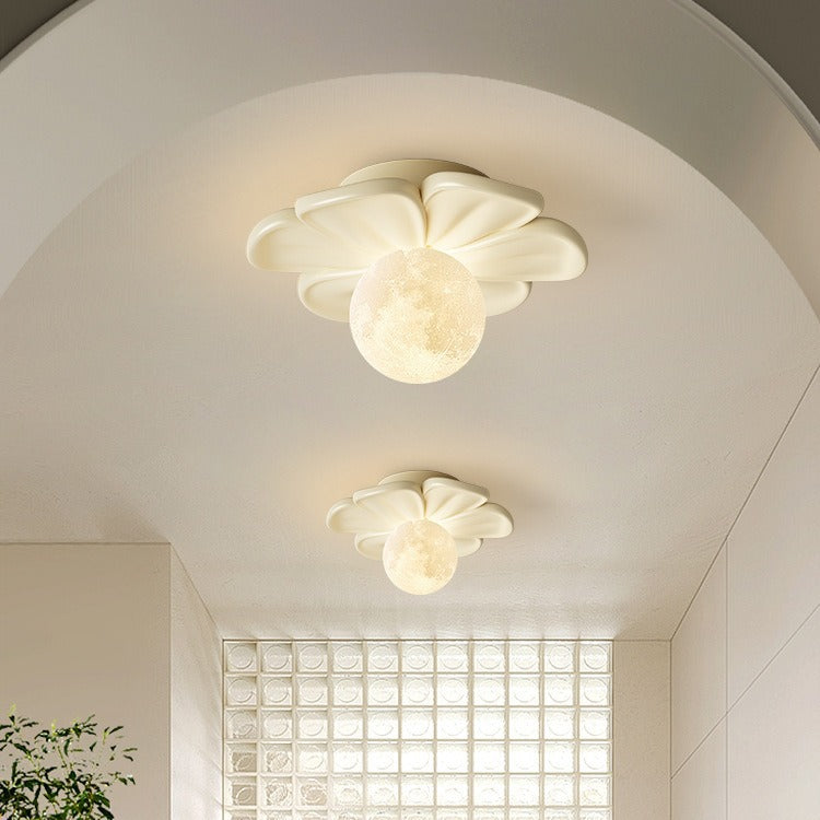 مصباح سقف معاصر من الراتنج الشمالي PLA على شكل قمر مزهر مزود بمصباح واحد وتركيب شبه مسطح للممر
