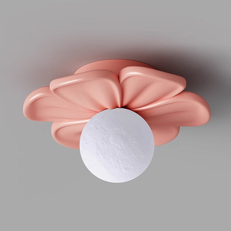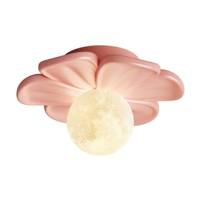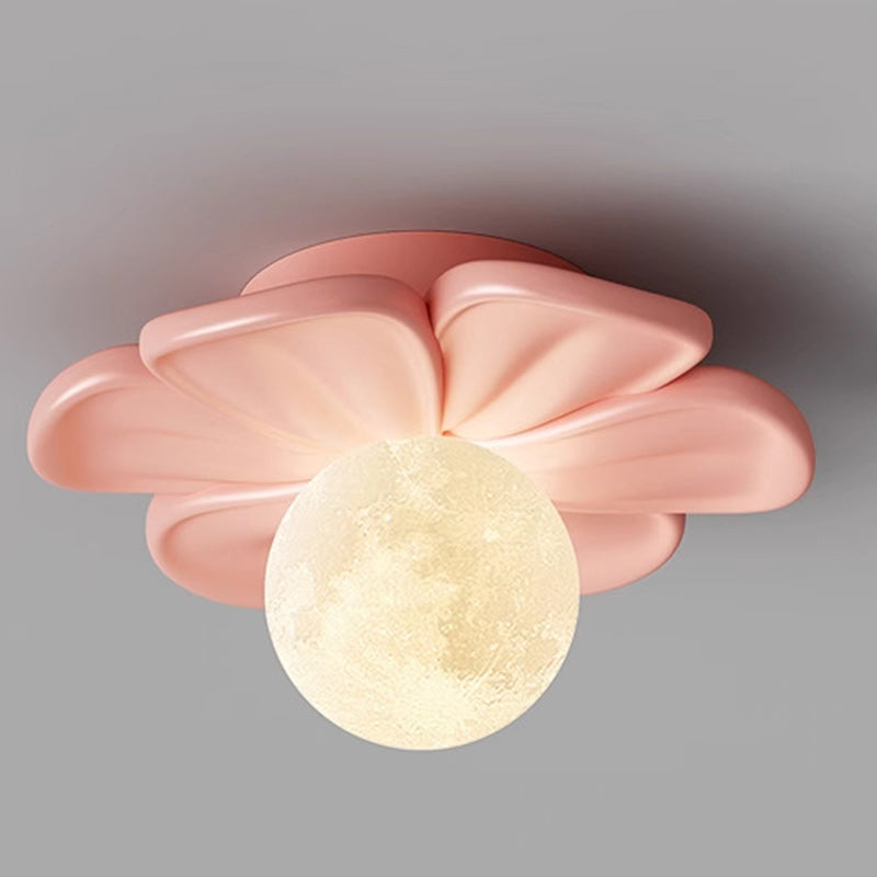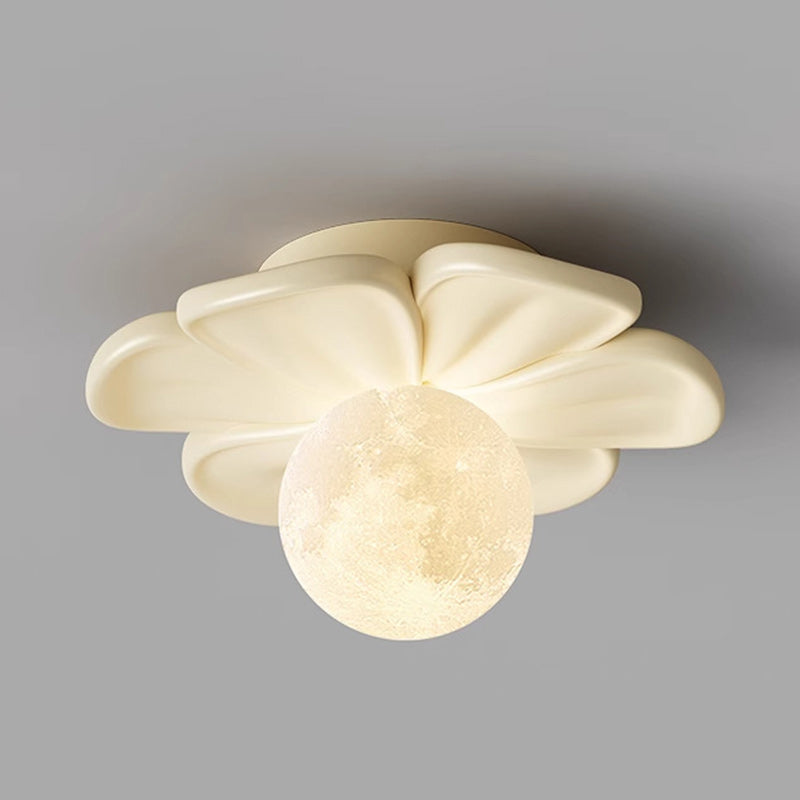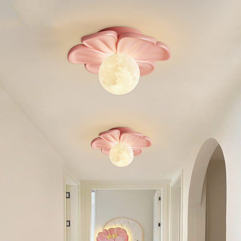 مصباح سقف معاصر من الراتنج الشمالي PLA على شكل قمر مزهر مزود بمصباح واحد وتركيب شبه مسطح للممر