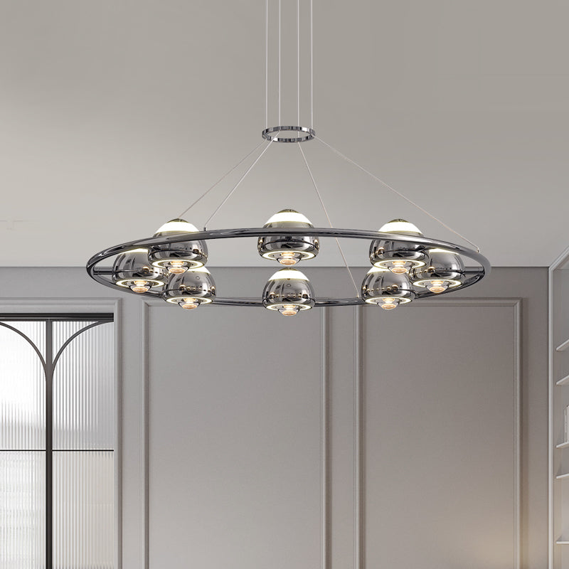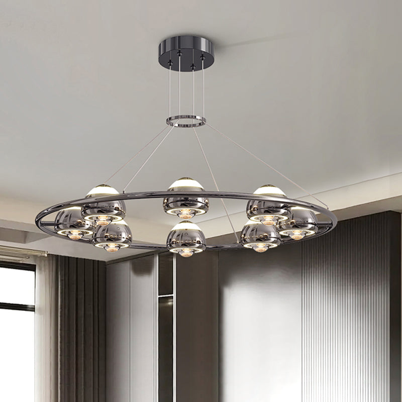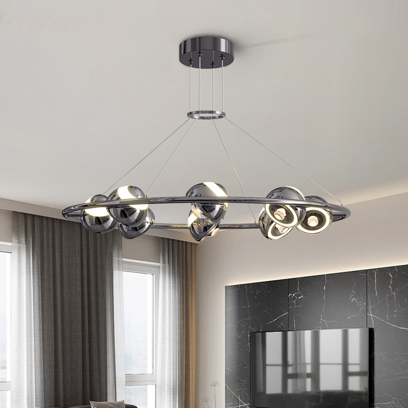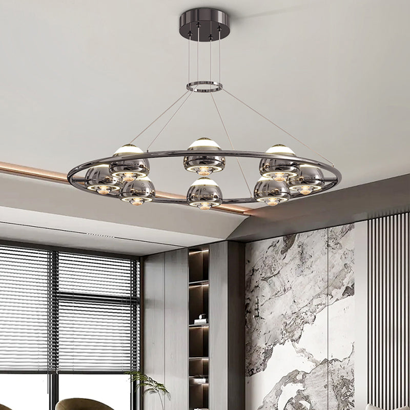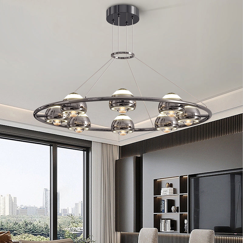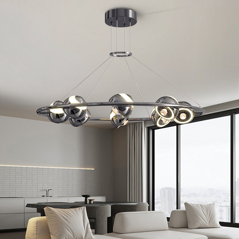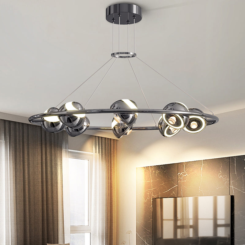 ثريا LED دائرية معاصرة من الألومنيوم والحديد والأكريليك لغرفة المعيشة