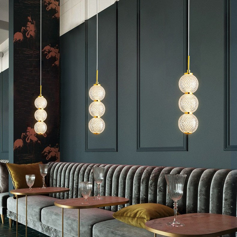 ثريا عصرية من الحديد الأكريليكي بتصميم دائري على شكل كرة طويلة، بثلاثة مصابيح ونصف لغرفة المعيشة