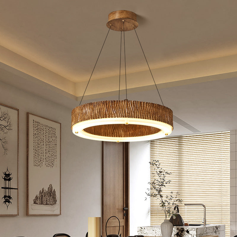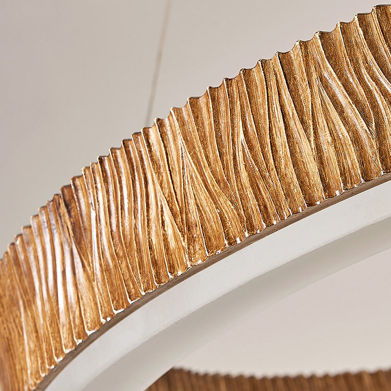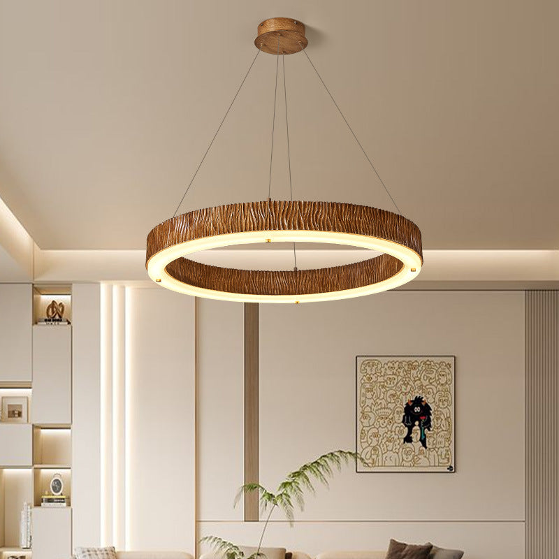 ثريا LED معاصرة من الحديد والأكريليك والألياف الزجاجية والخشبية الدائرية النوردية لغرفة المعيشة