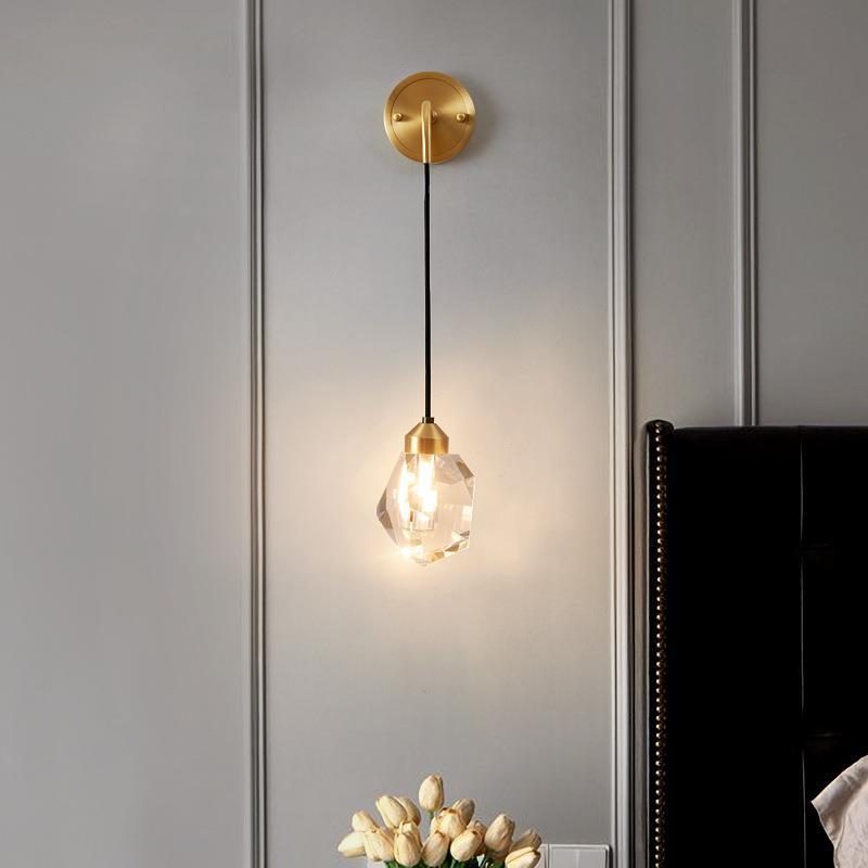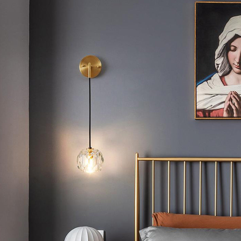 مصباح حائطي دائري معاصر من النحاس الكريستالي بإضاءة واحدة لغرفة المعيشة
