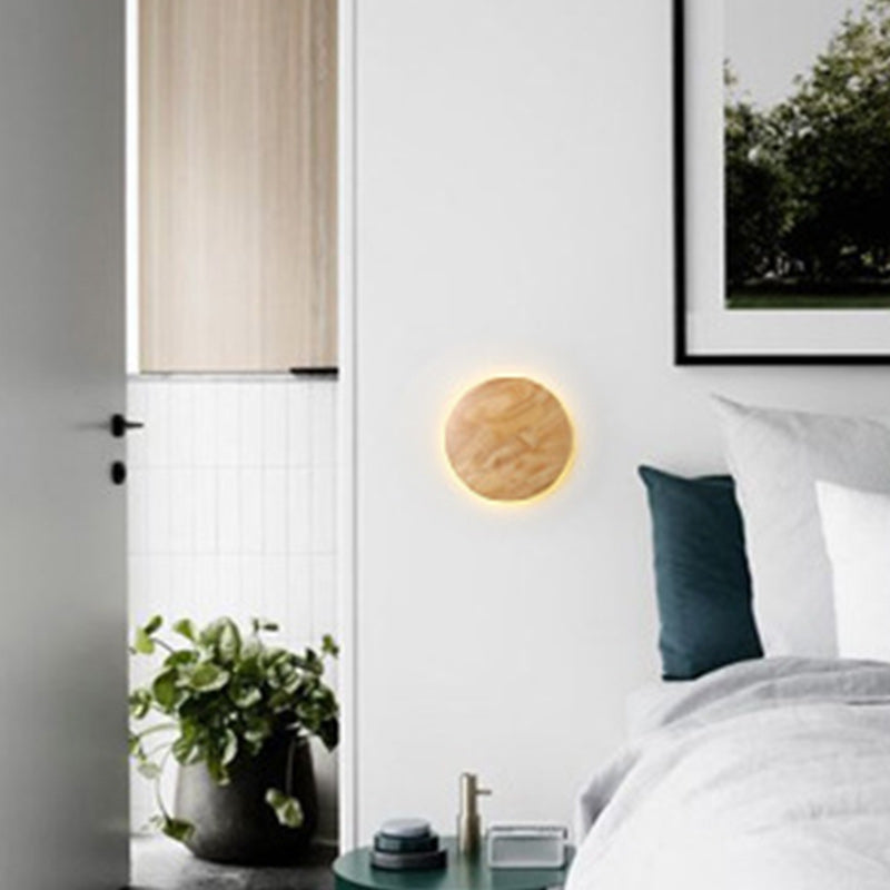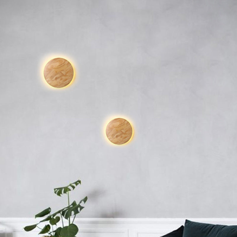 مصباح حائط LED دائري معاصر من الخشب والحديد لغرفة المعيشة