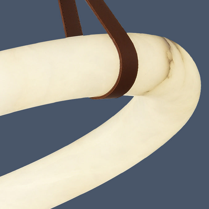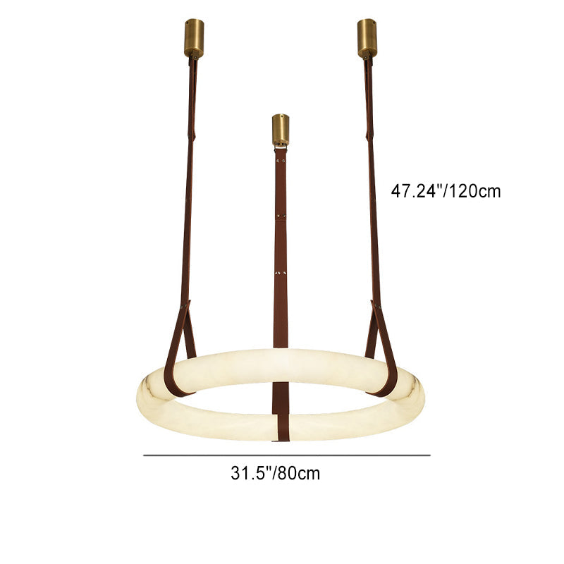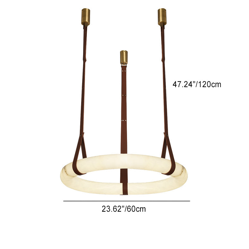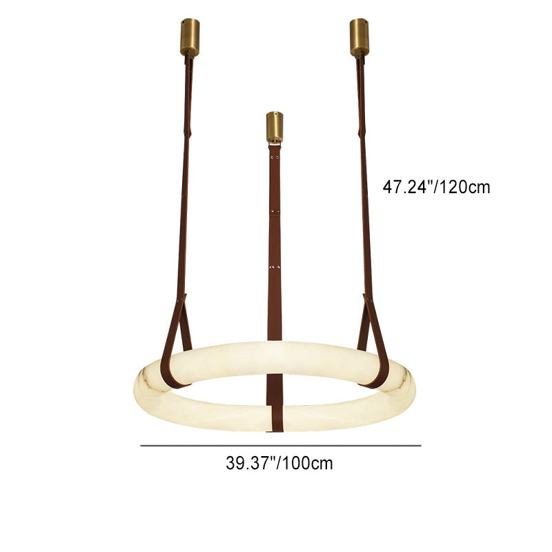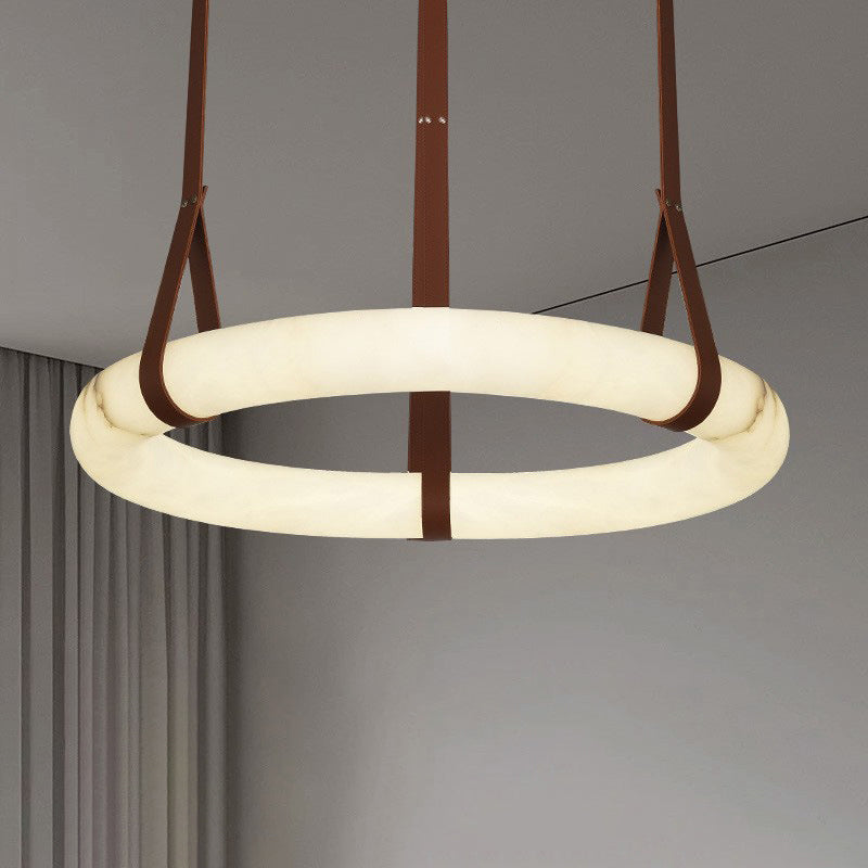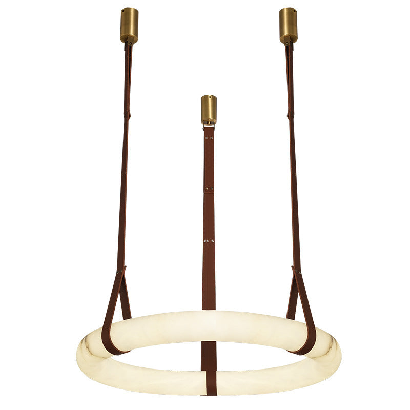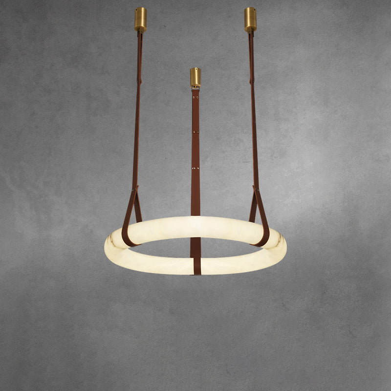 ثريا LED دائرية معاصرة من الجلد والنحاس والرخام المقلد لغرفة المعيشة