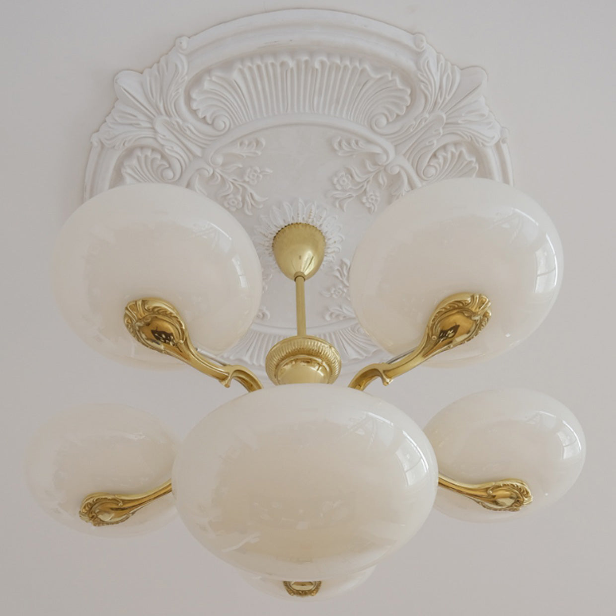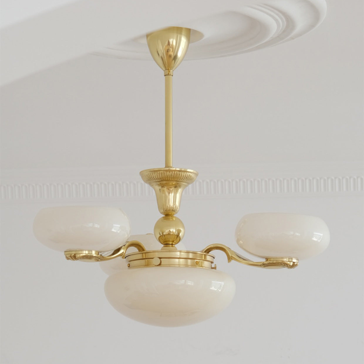 ثريا دائرية معاصرة من النحاس والزجاج بتصميم أوبال نورديك، بإضاءة 5/7، لغرفة المعيشة