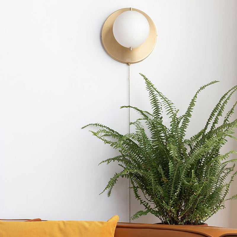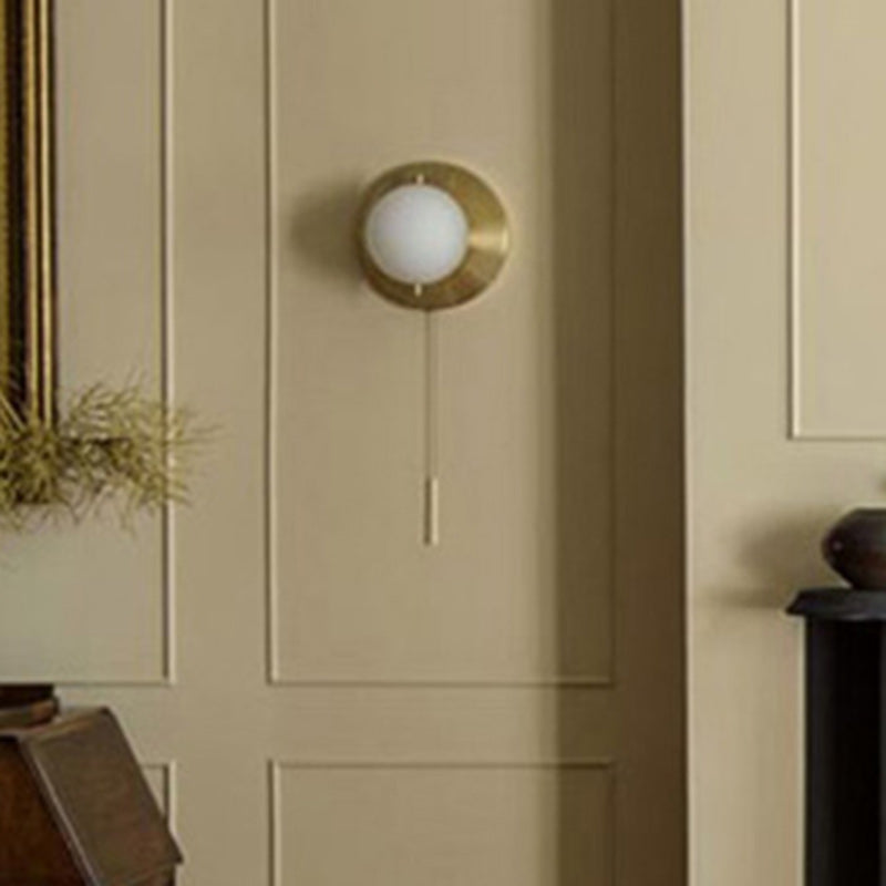 مصباح حائطي معاصر على شكل كرة مستديرة من الحديد والزجاج، مزود بإضاءة واحدة، مناسب لغرفة المعيشة