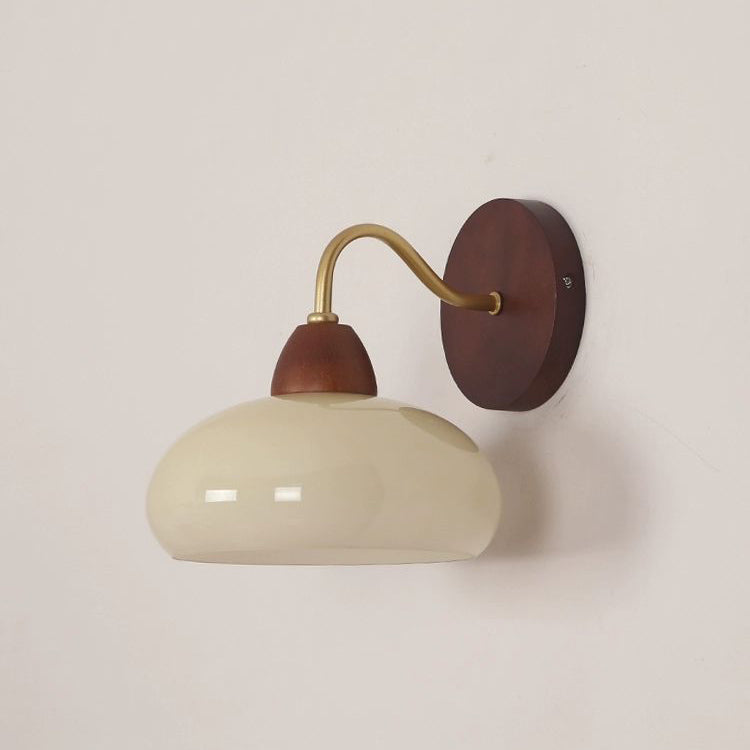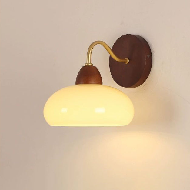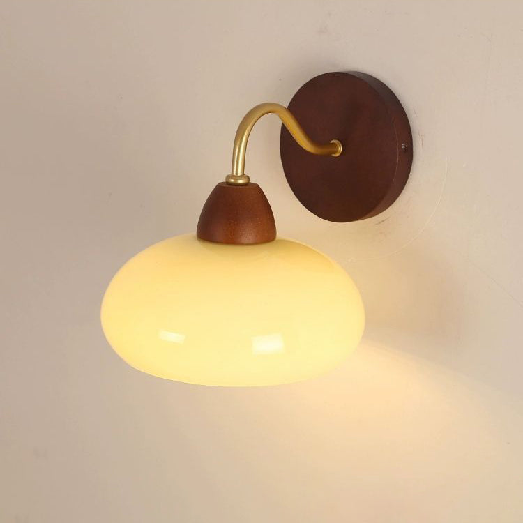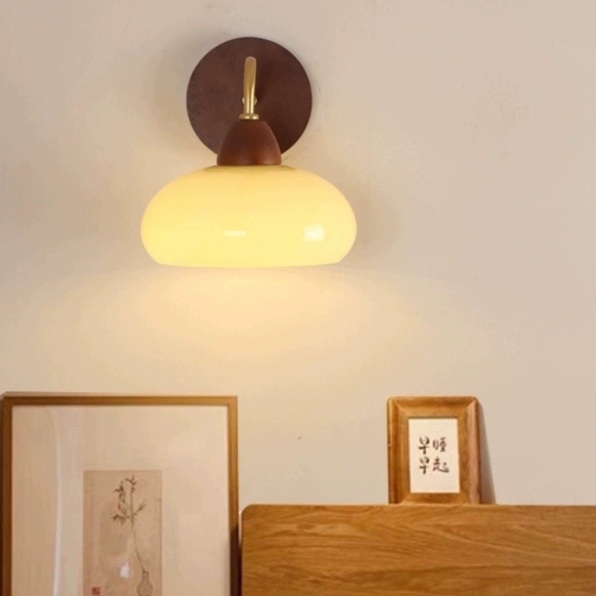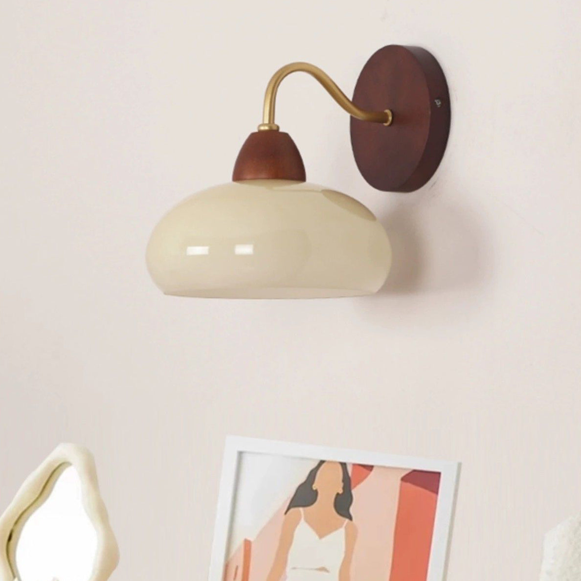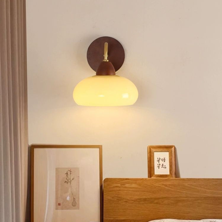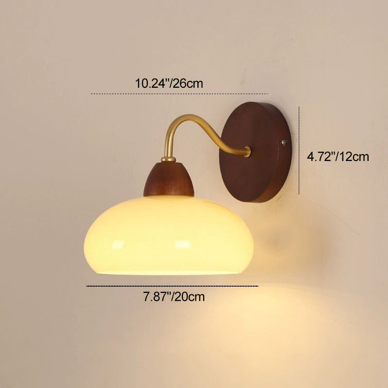 مصباح حائطي عصري بتصميم نورديك دائري مصنوع من الخشب الصلب والحديد والزجاج، مزود بمصباح واحد، مناسب لغرفة النوم وغرفة المعيشة