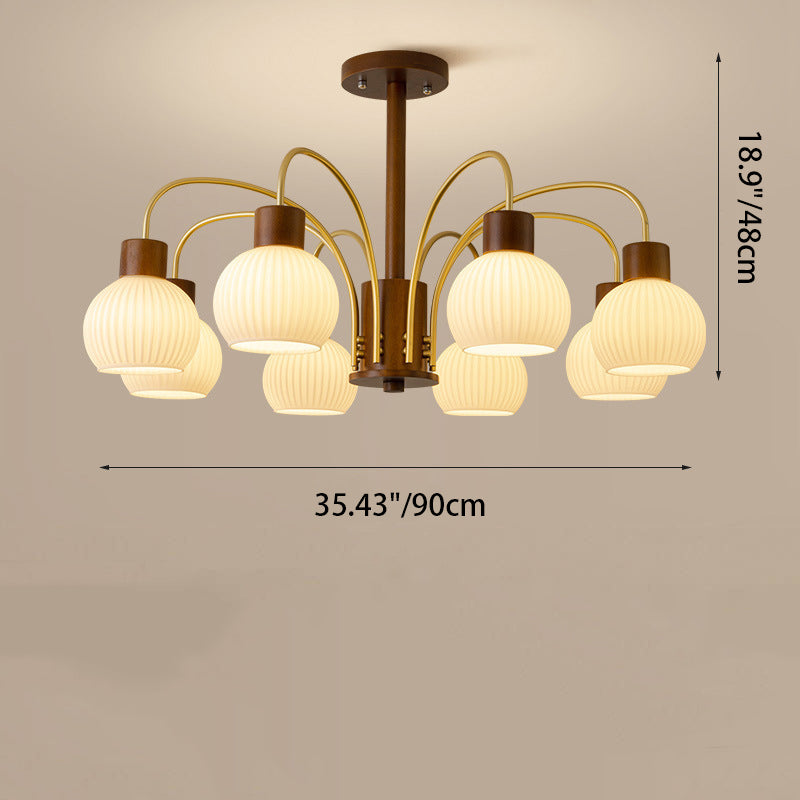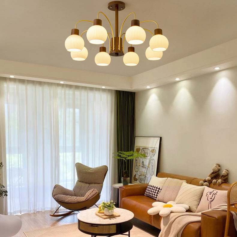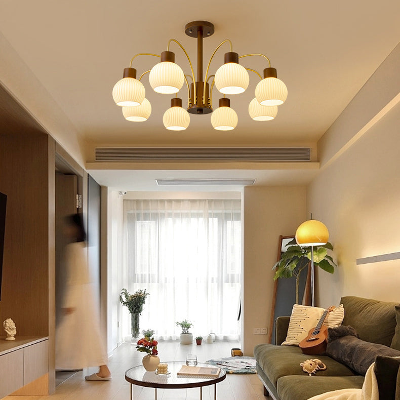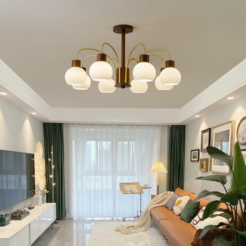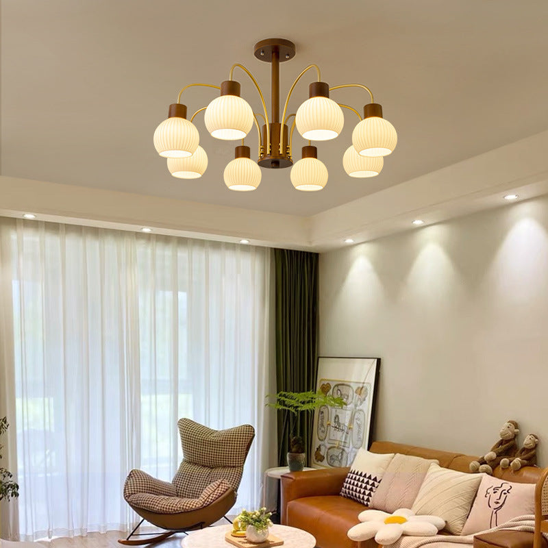 ثريا معاصرة بتصميم ريترو على شكل قبة دائرية من الحديد الصلب وإطار خشبي متين وغطاء زجاجي 6/8 ضوء لغرفة المعيشة