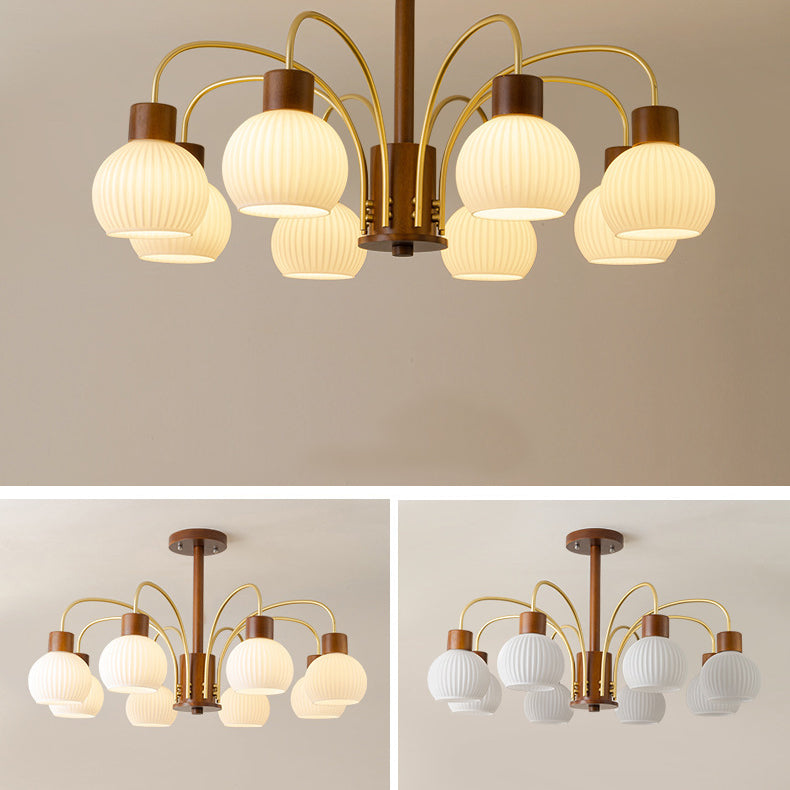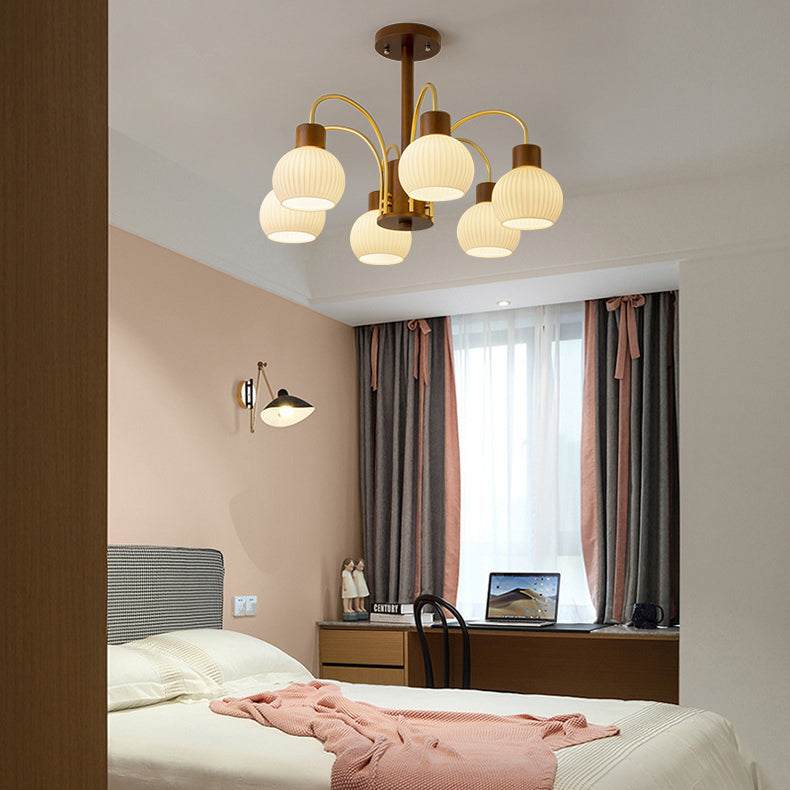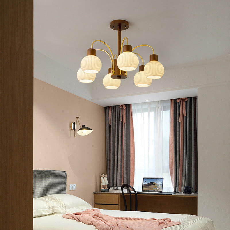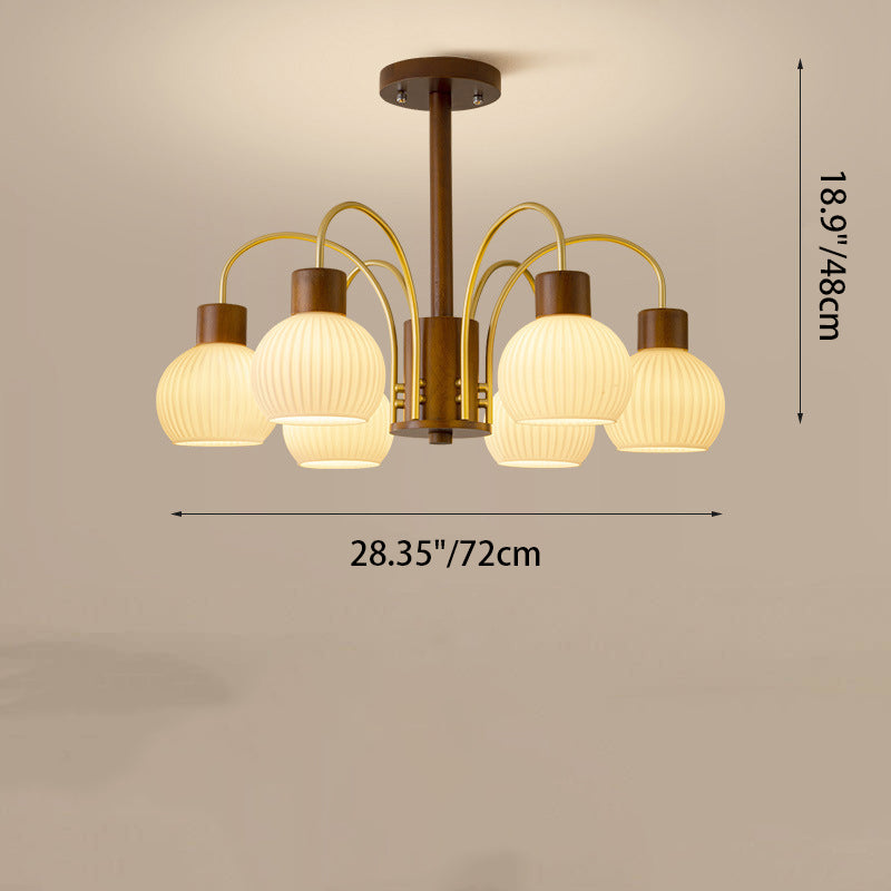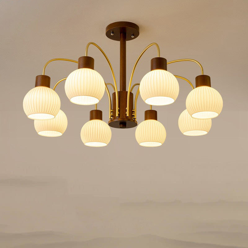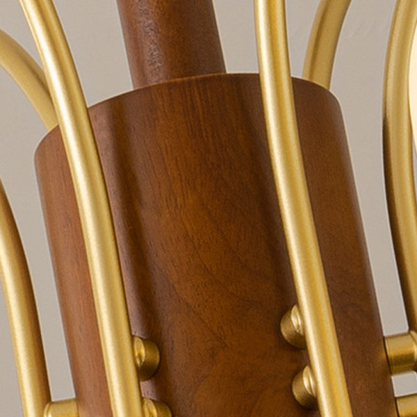 ثريا معاصرة بتصميم ريترو على شكل قبة دائرية من الحديد الصلب وإطار خشبي متين وغطاء زجاجي 6/8 ضوء لغرفة المعيشة