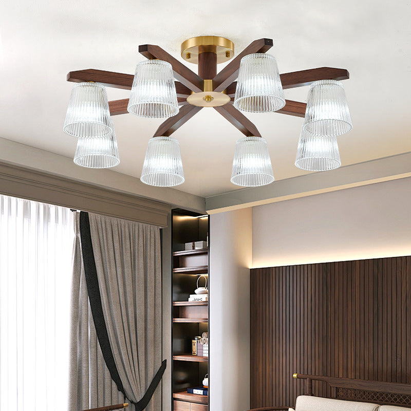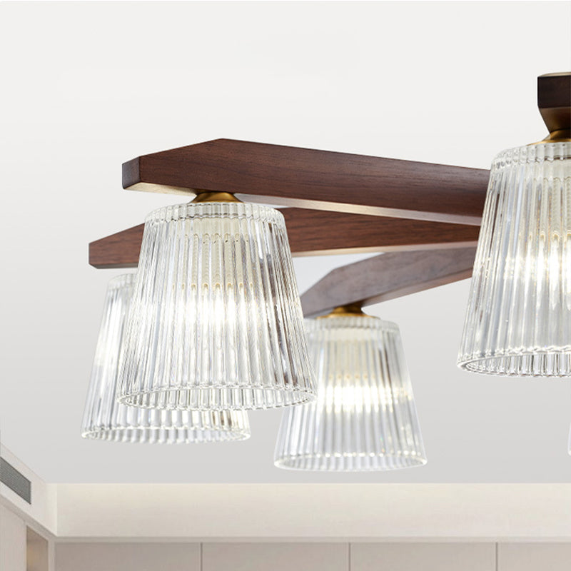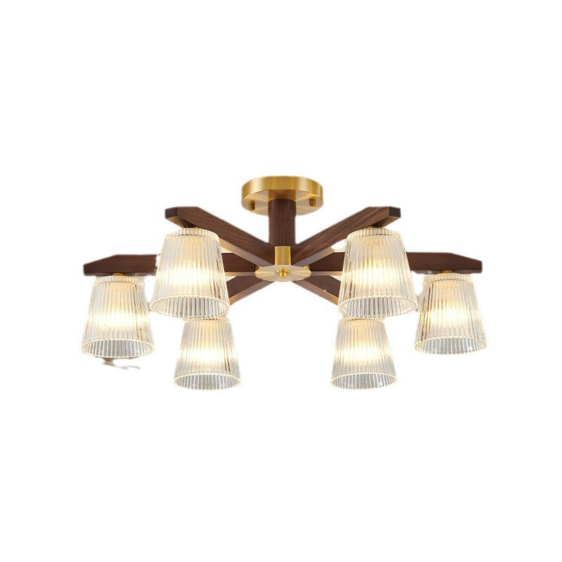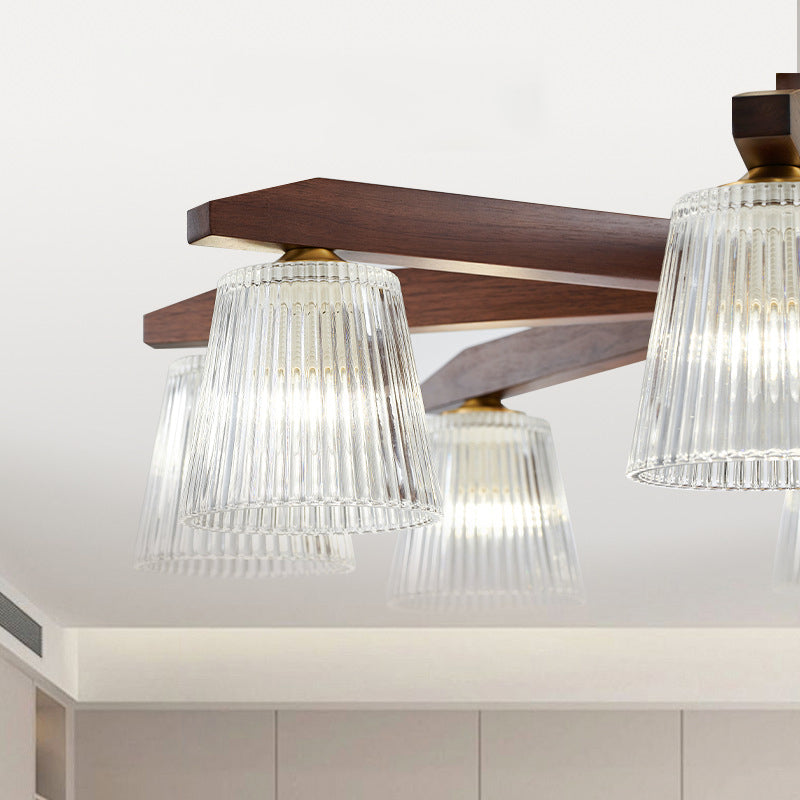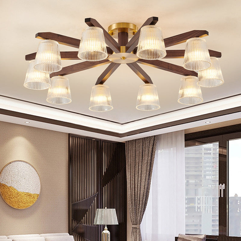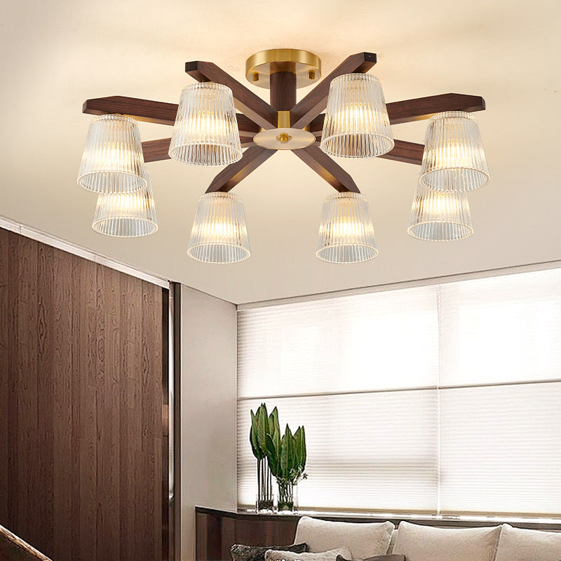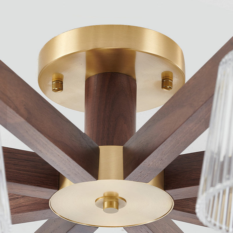 مصباح سقف شبه مسطح معاصر من خشب الجوز والنحاس والزجاج، 5/6/8/10 مصابيح لغرفة النوم