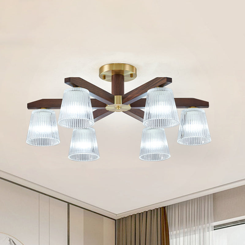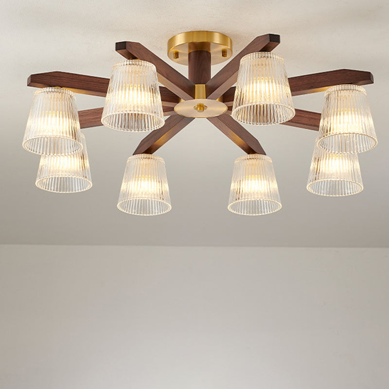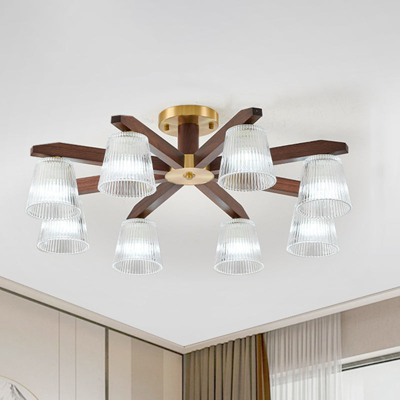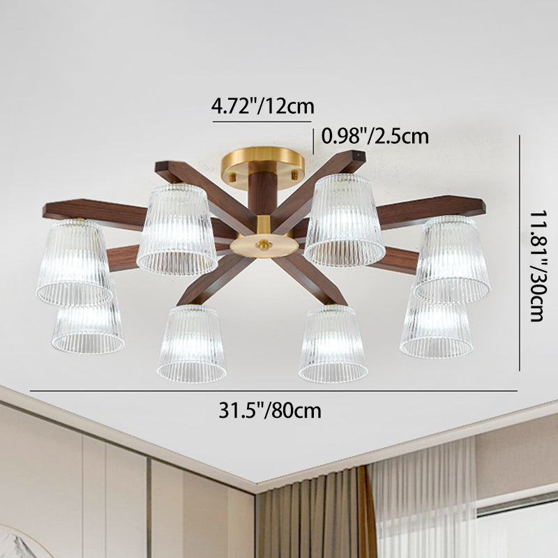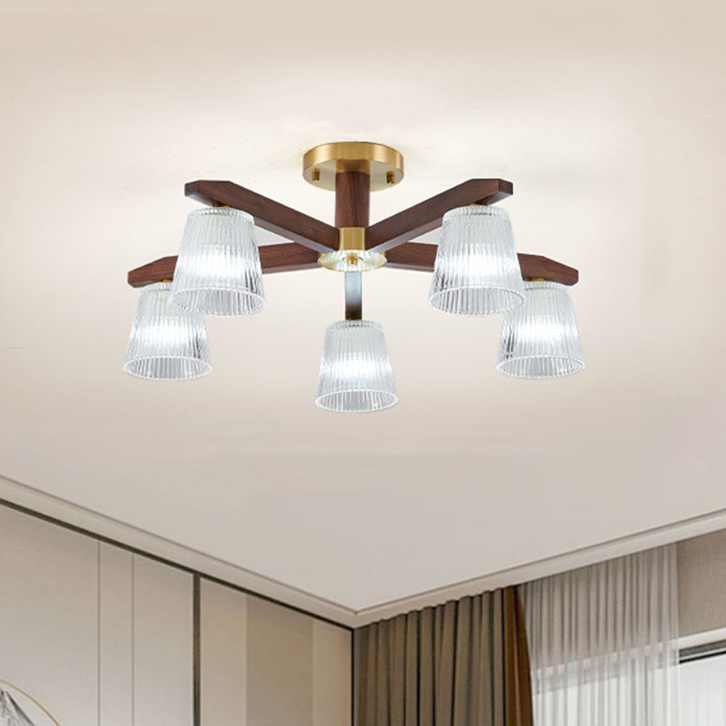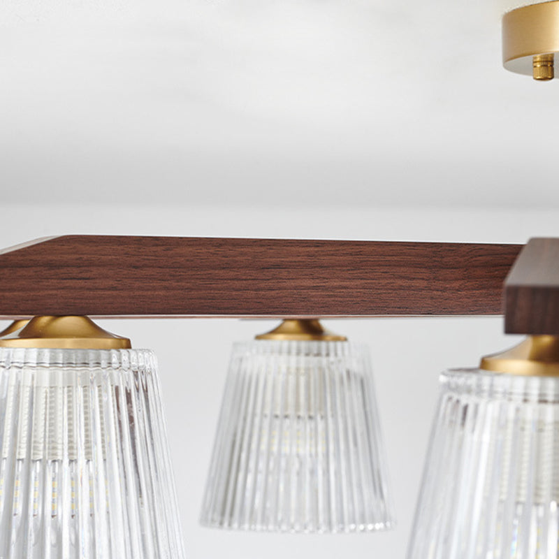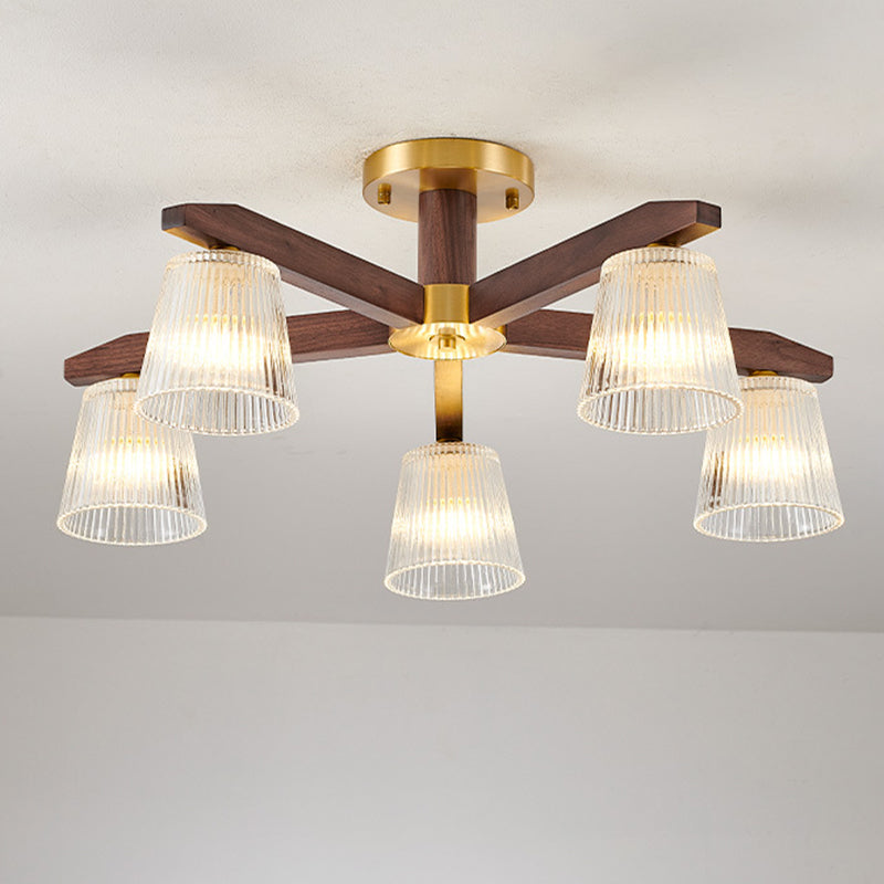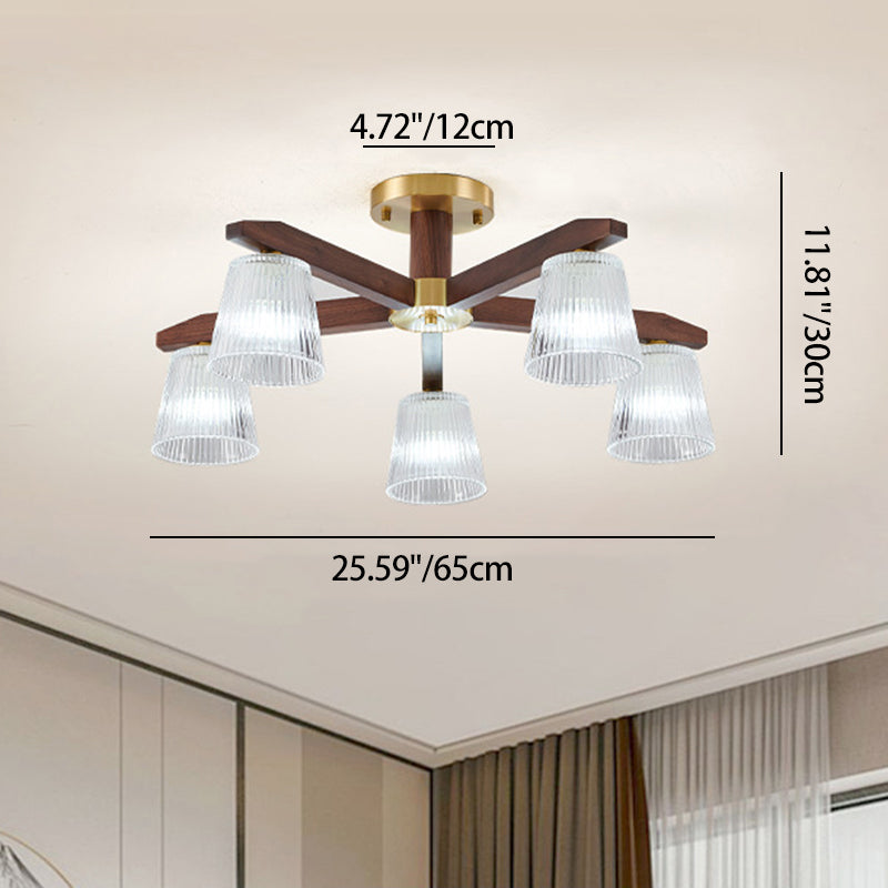 مصباح سقف شبه مسطح معاصر من خشب الجوز والنحاس والزجاج، 5/6/8/10 مصابيح لغرفة النوم