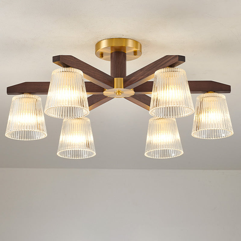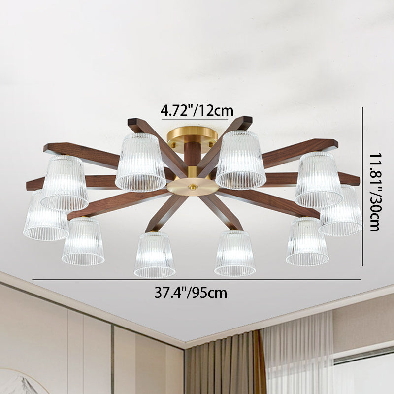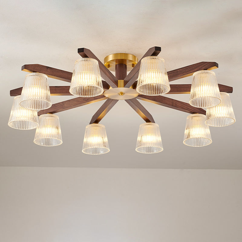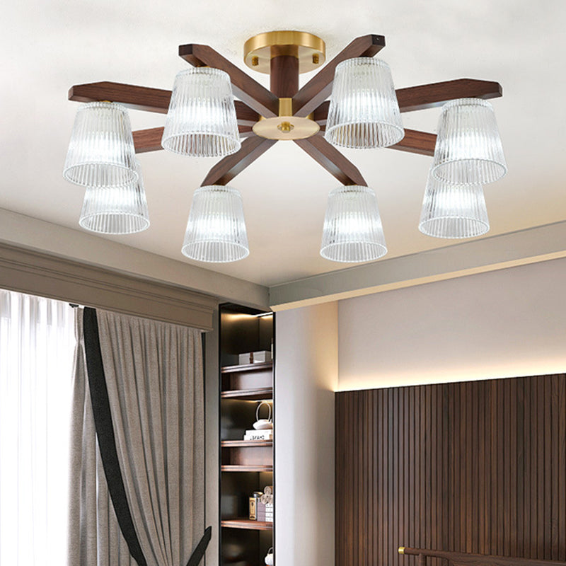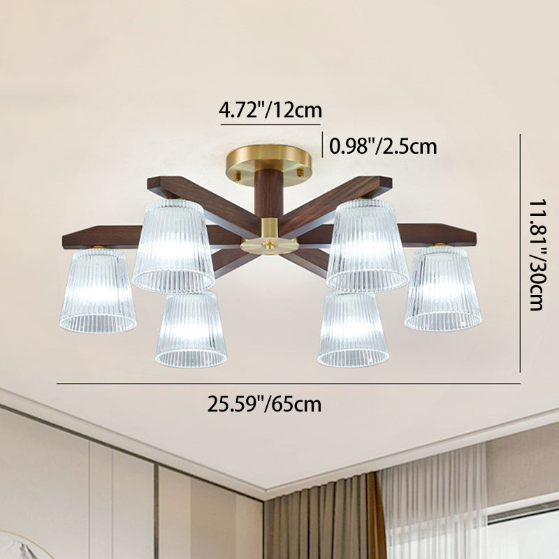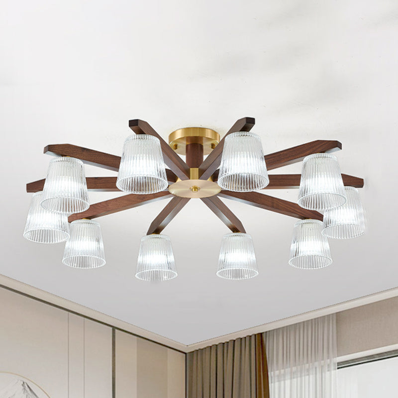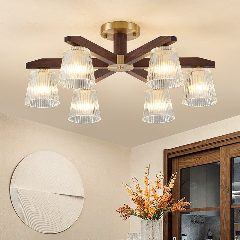 مصباح سقف شبه مسطح معاصر من خشب الجوز والنحاس والزجاج، 5/6/8/10 مصابيح لغرفة النوم