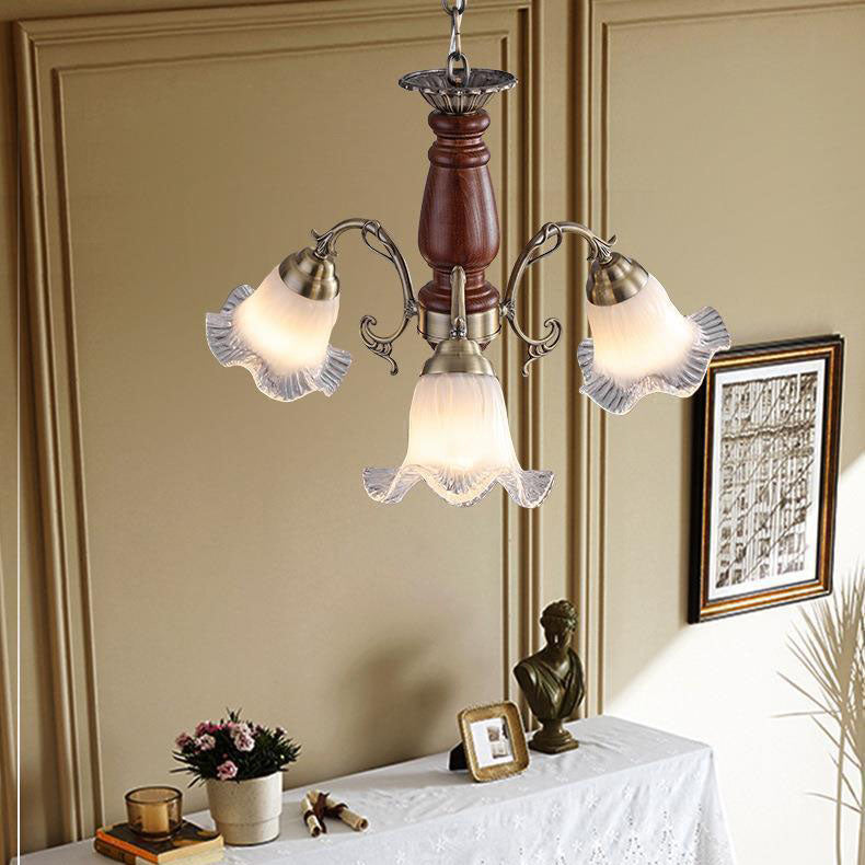 ثريا زجاجية معاصرة بتصميم ريترو من الخشب الصلب، 3/5/8 مصابيح لغرفة المعيشة