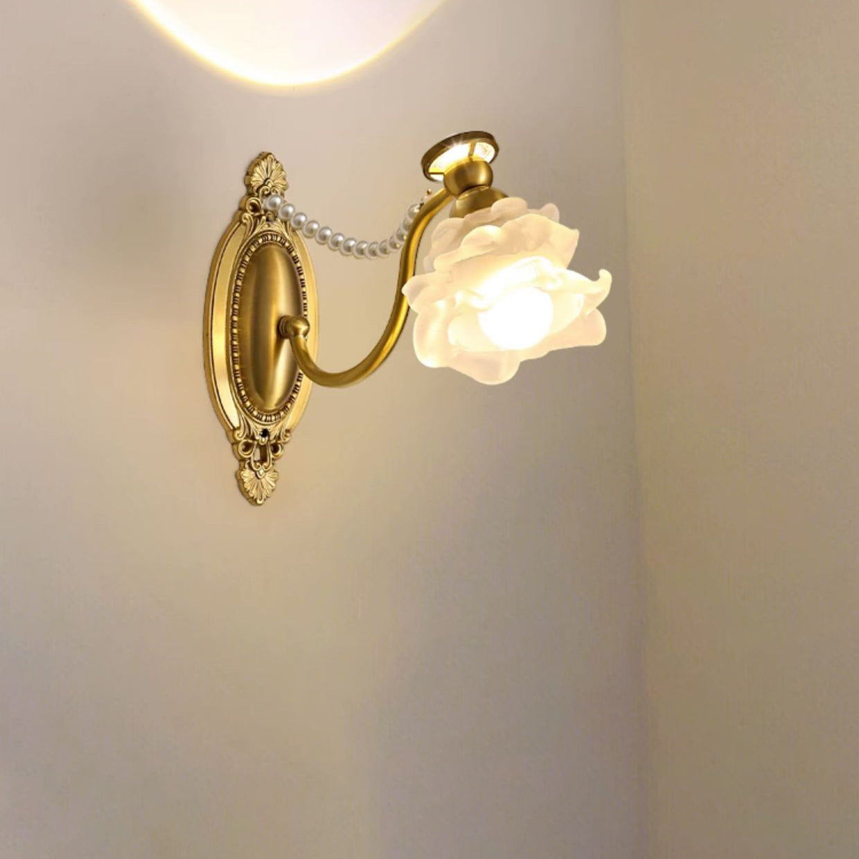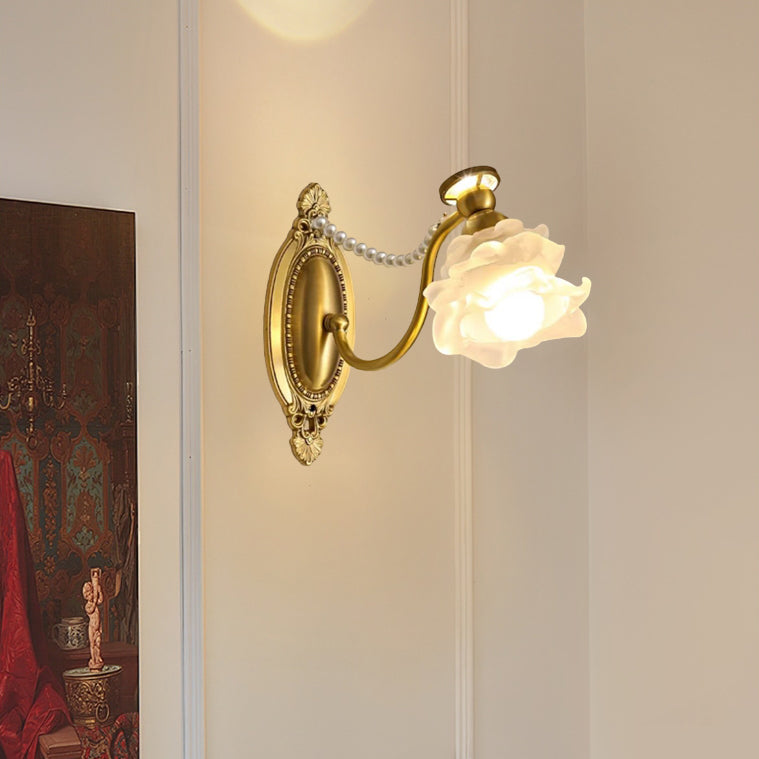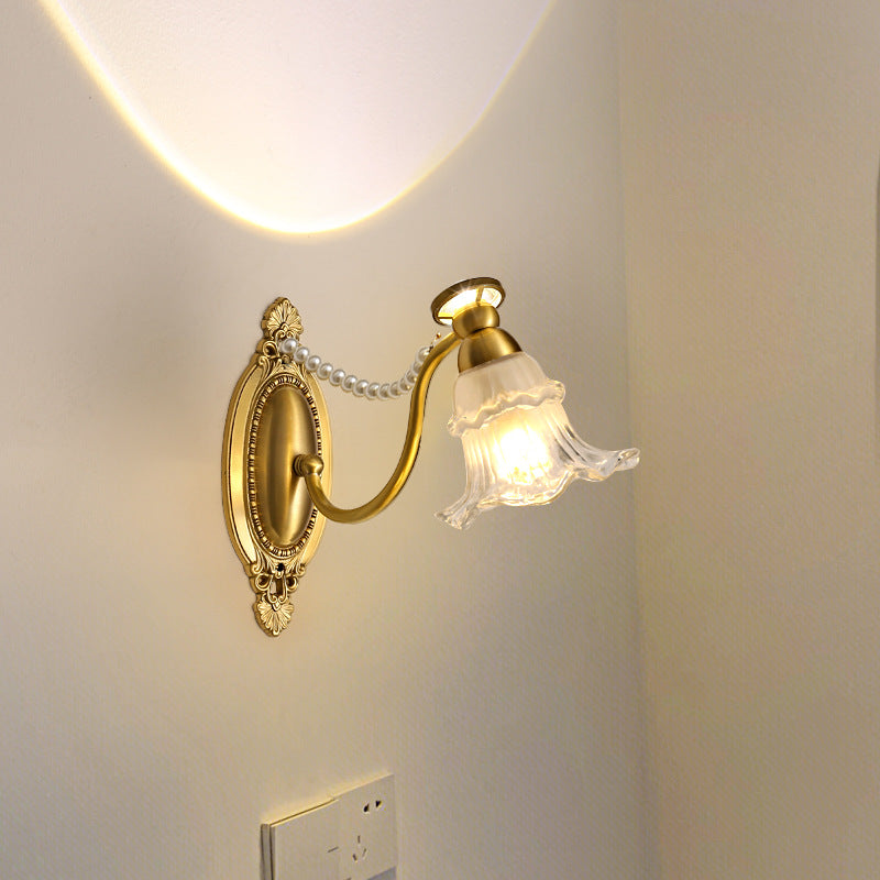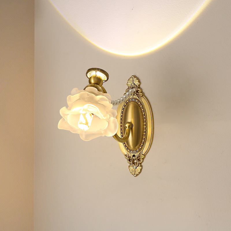 مصباح حائط معاصر بتصميم زهرة نحاسية زجاجية بإضاءة واحدة لغرفة النوم