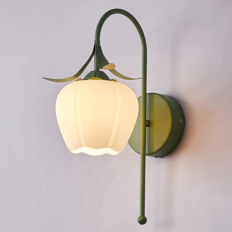 مصباح حائطي معاصر بتصميم ريترو على شكل زهرة من الحديد والزجاج، مزود بإضاءة واحدة، مناسب لغرفة المعيشة