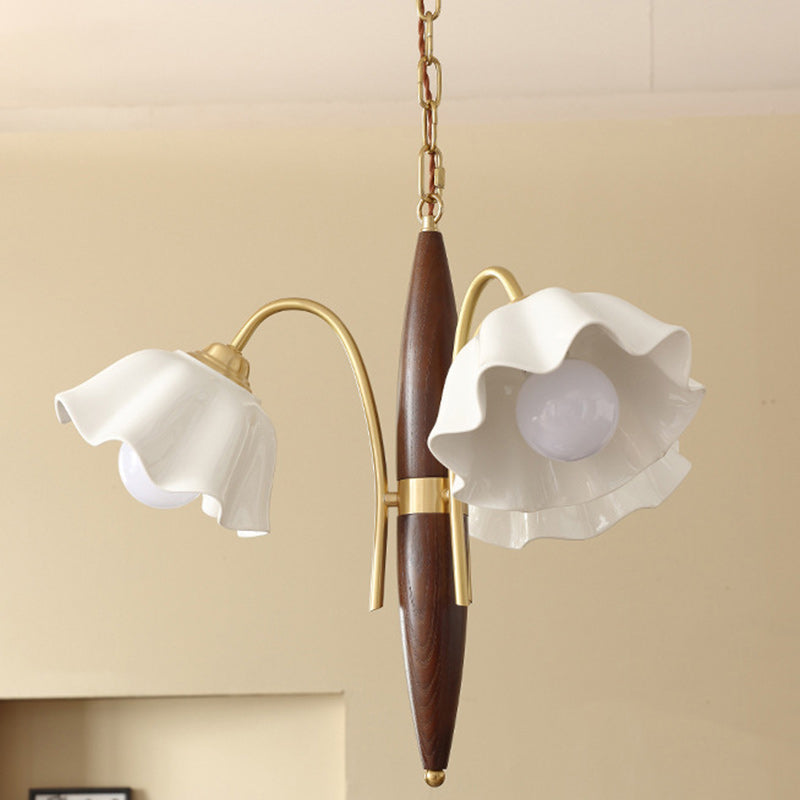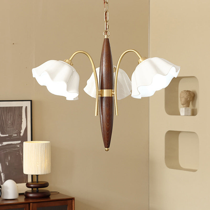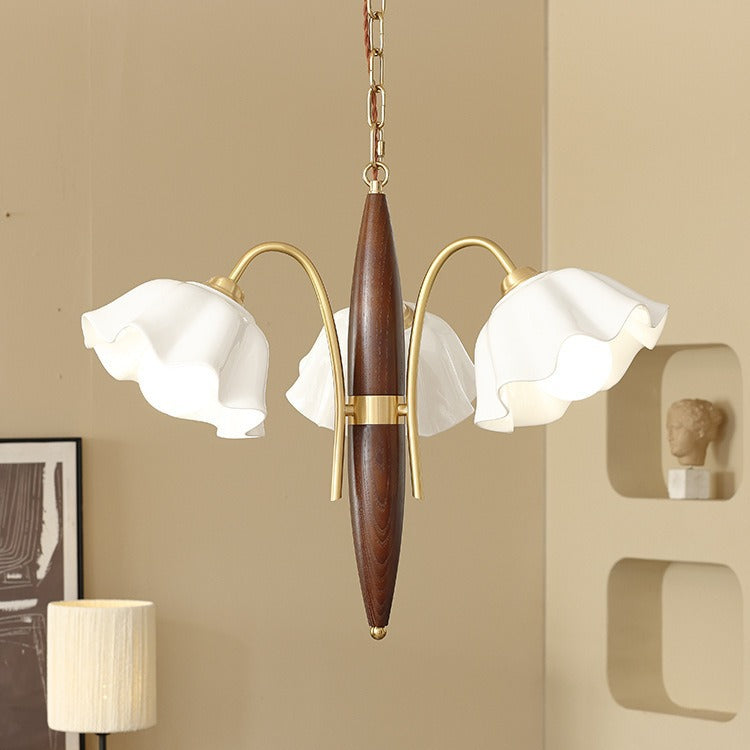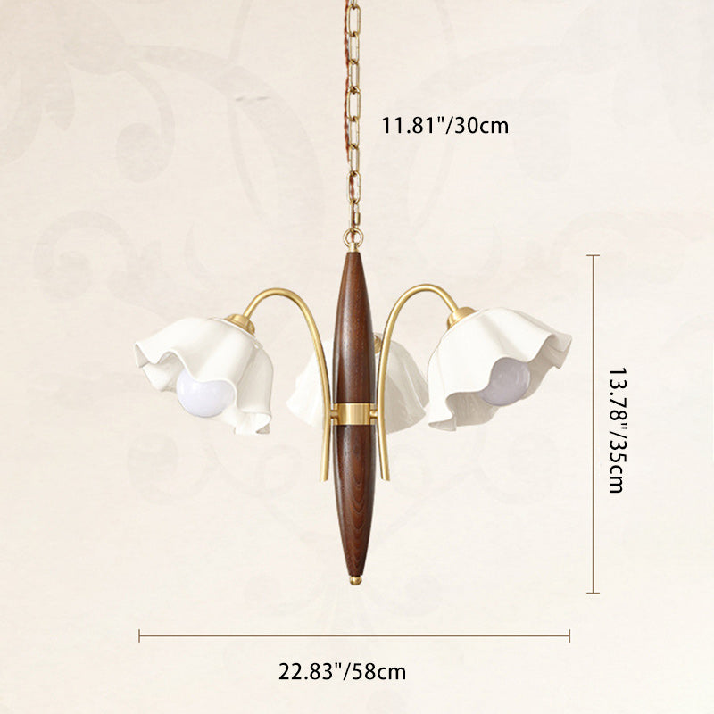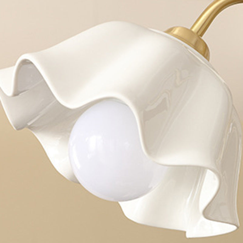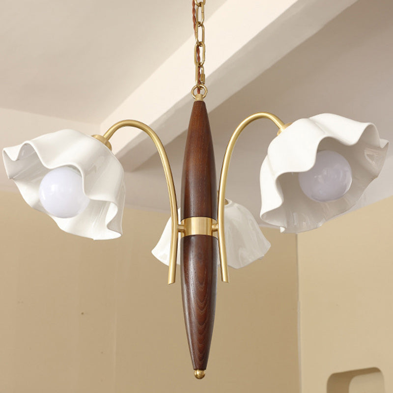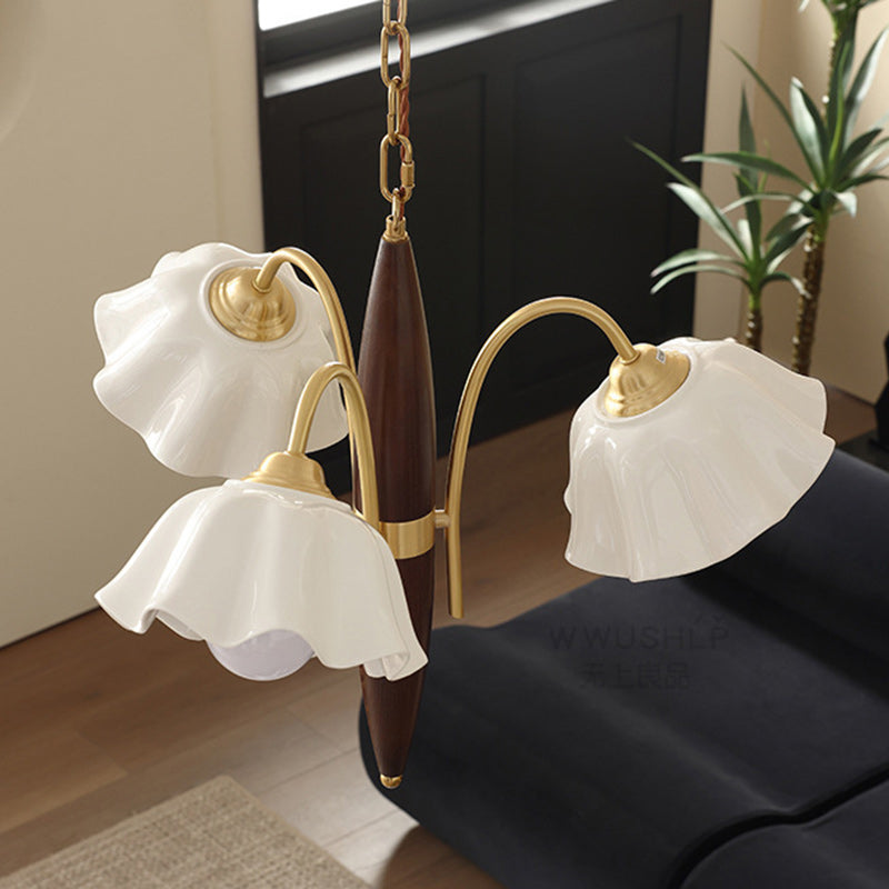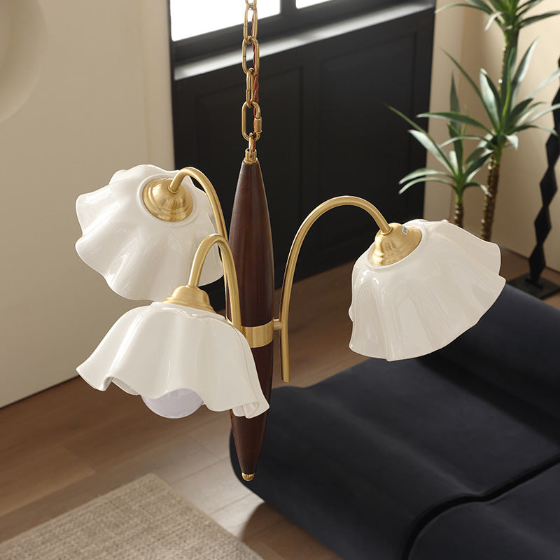 ثريا معاصرة من السيراميك والنحاس بتصميم زهور عتيقة بثلاثة مصابيح لغرفة المعيشة
