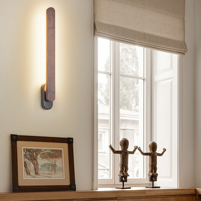 مصباح حائط LED معاصر من خشب الجوز الأسود والنحاسي بتصميم شريطي طويل لغرفة المعيشة