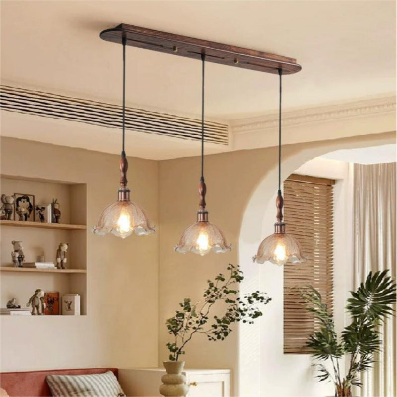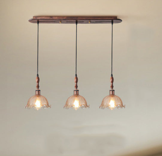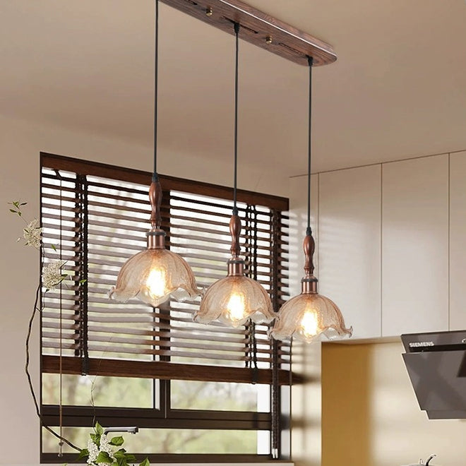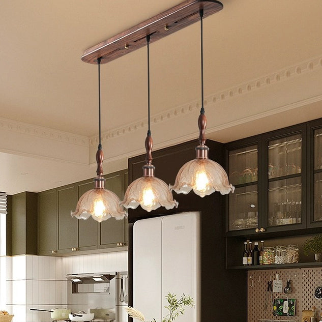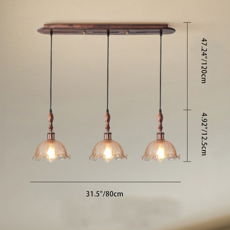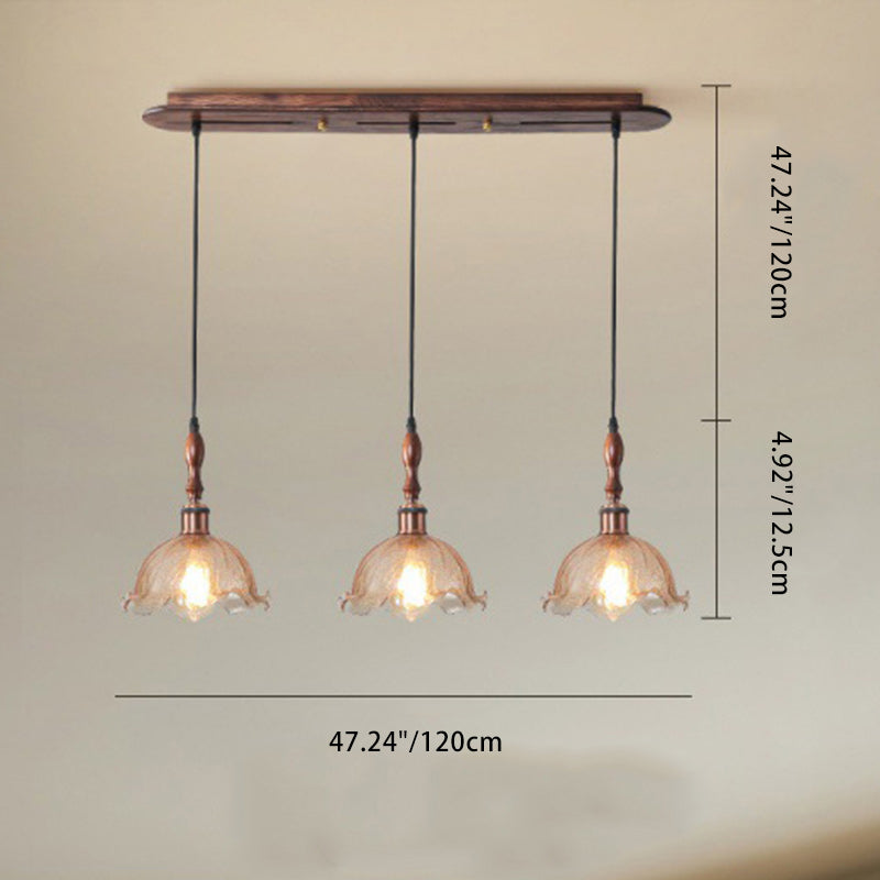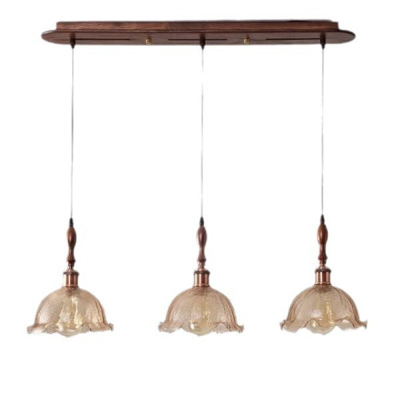 ثريا جزيرة معاصرة بتصميم عتيق من المعدن والنحاس وخشب الدردار والزجاج المتشقق قابلة للإزالة بثلاث مصابيح لغرفة الطعام