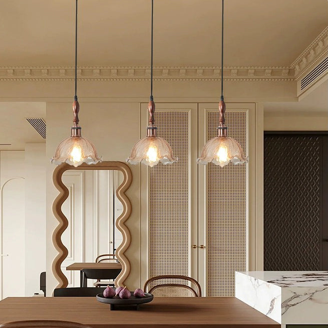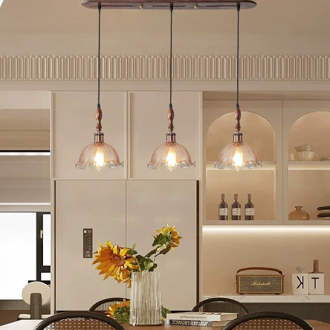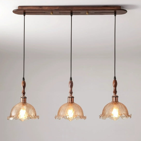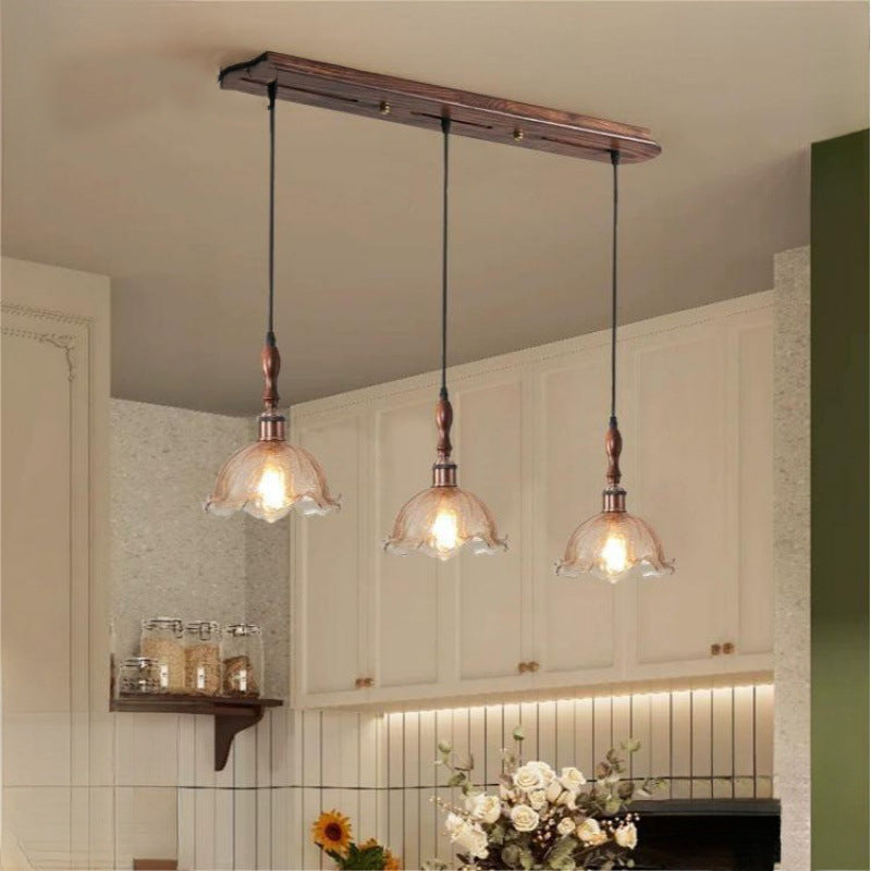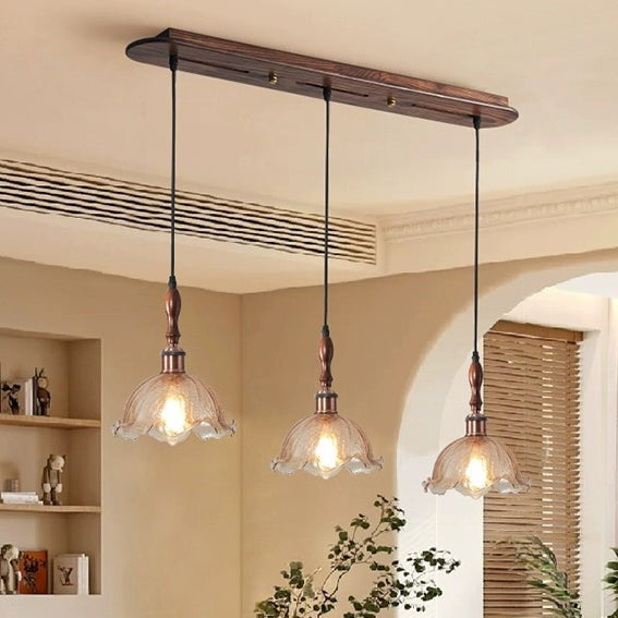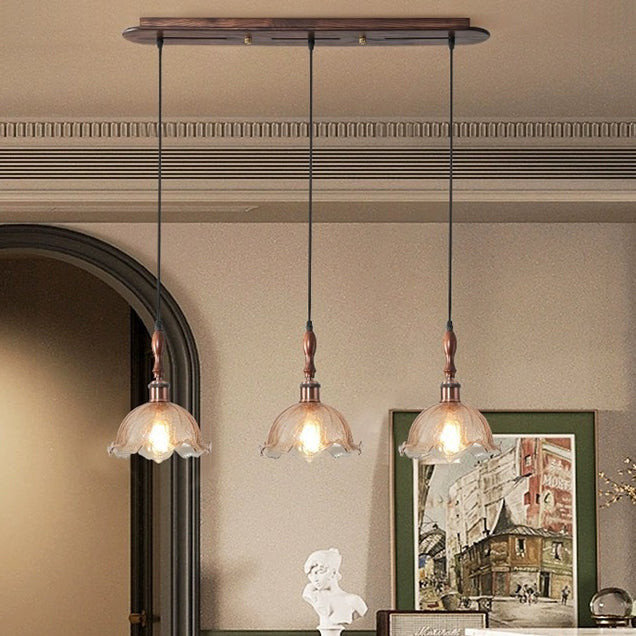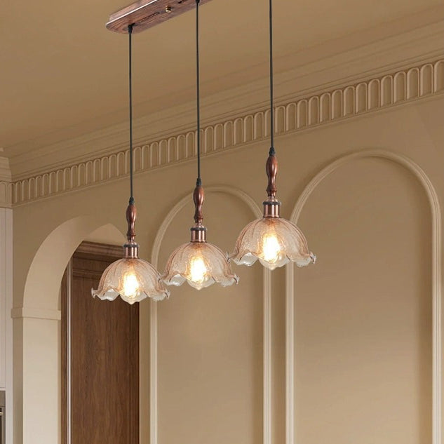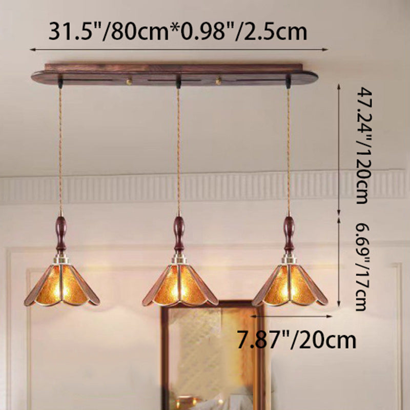ثريا جزيرة معاصرة بتصميم عتيق من المعدن والنحاس وخشب الدردار والزجاج المتشقق قابلة للإزالة بثلاث مصابيح لغرفة الطعام