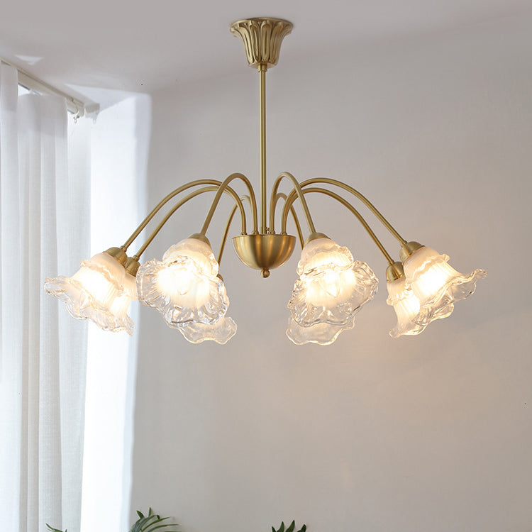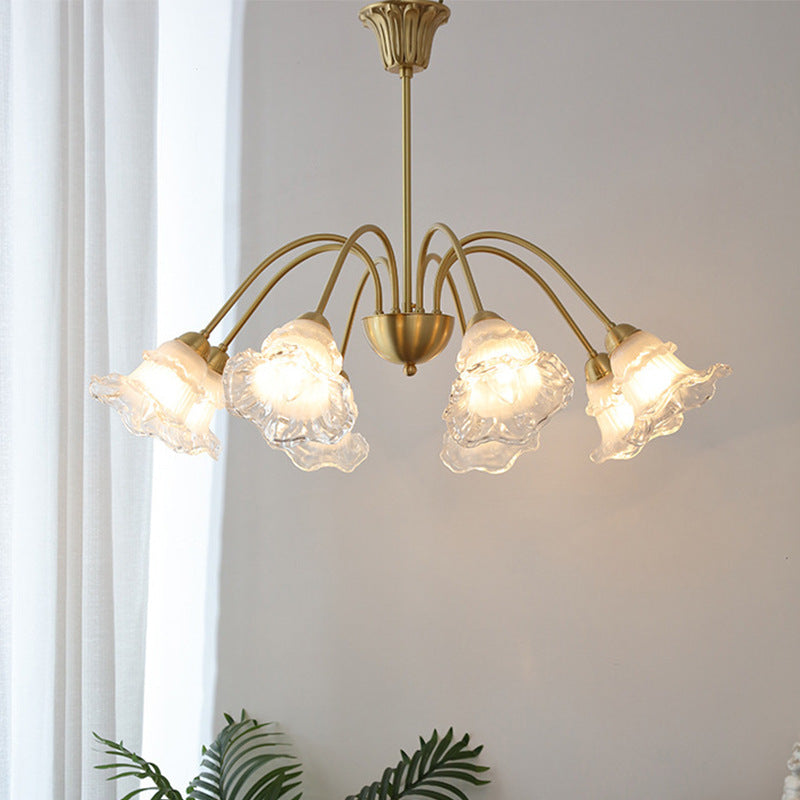 ثريا زجاجية نحاسية معاصرة بتصميم مجد الصباح، 5/6/8 أضواء لغرفة المعيشة