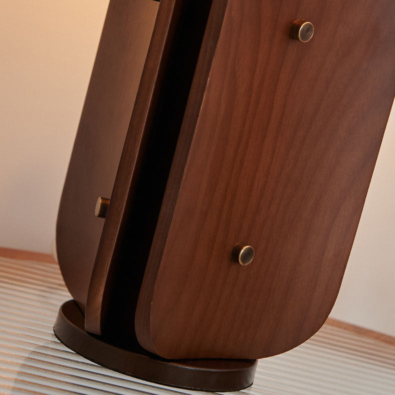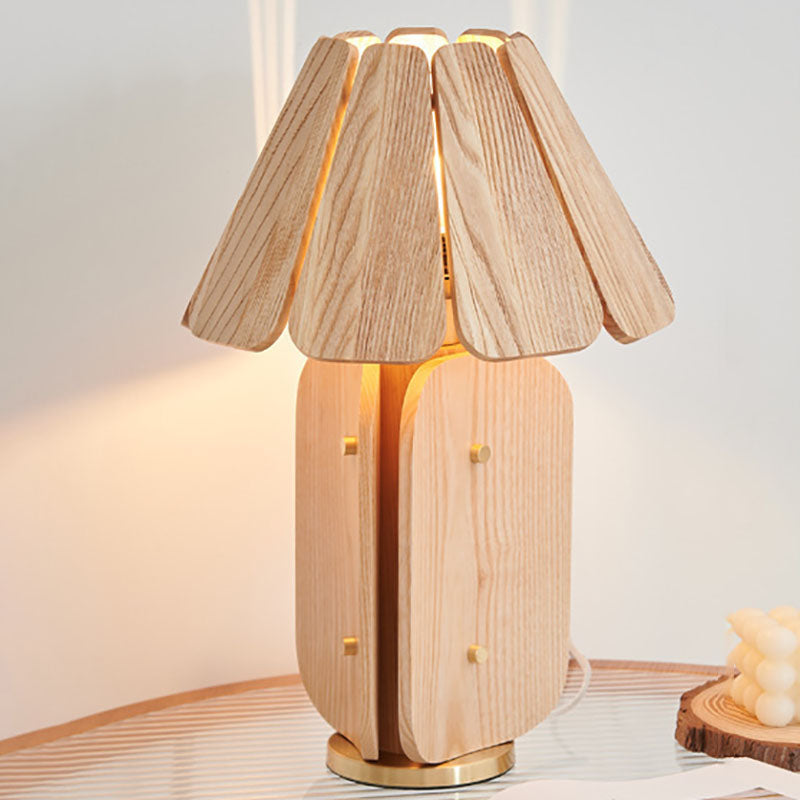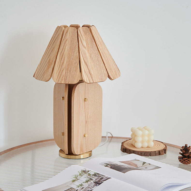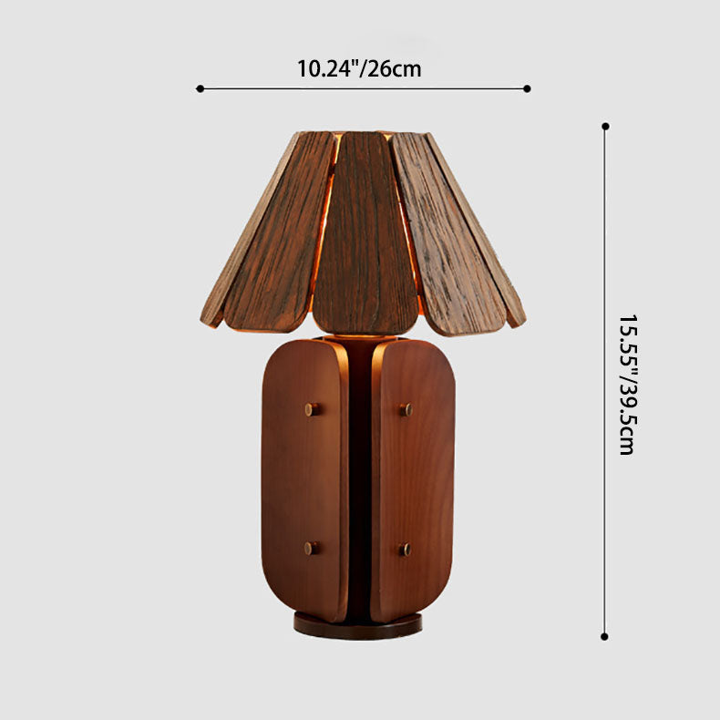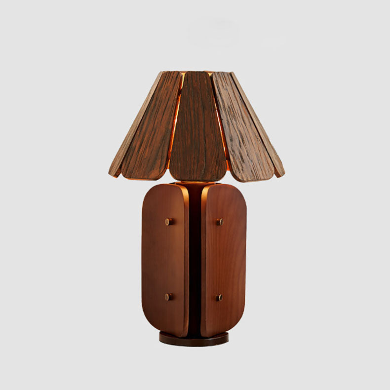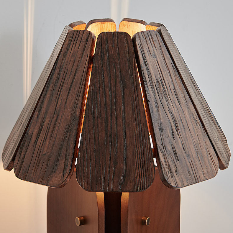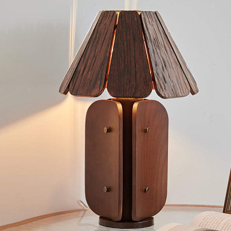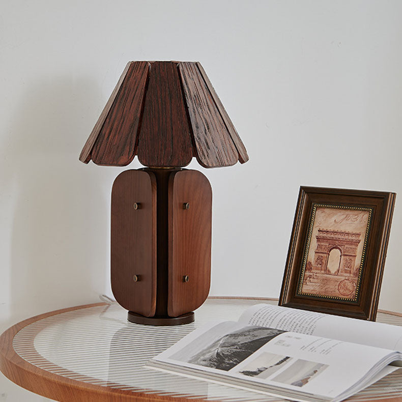Contemporary Retro Rectangular Cone Brass Solid Wood 1-Light Table Lamp For Living Room