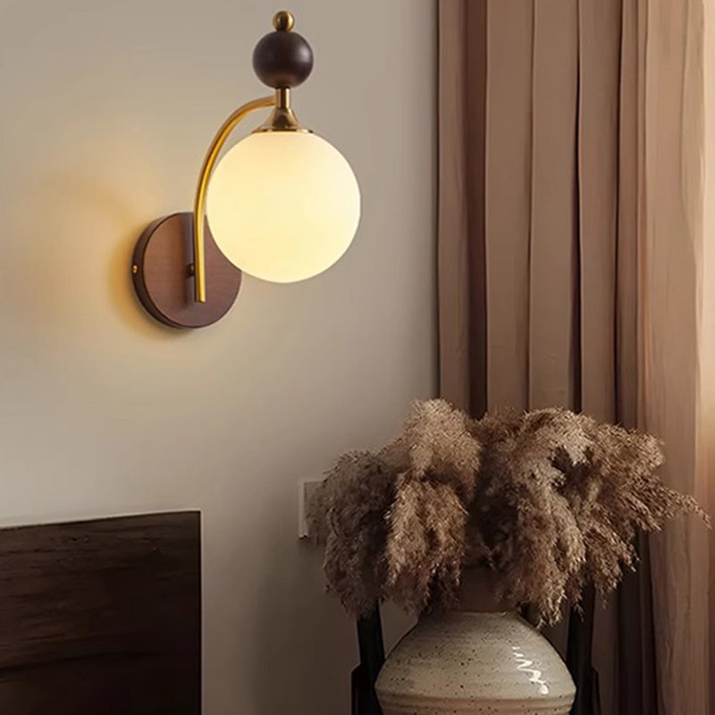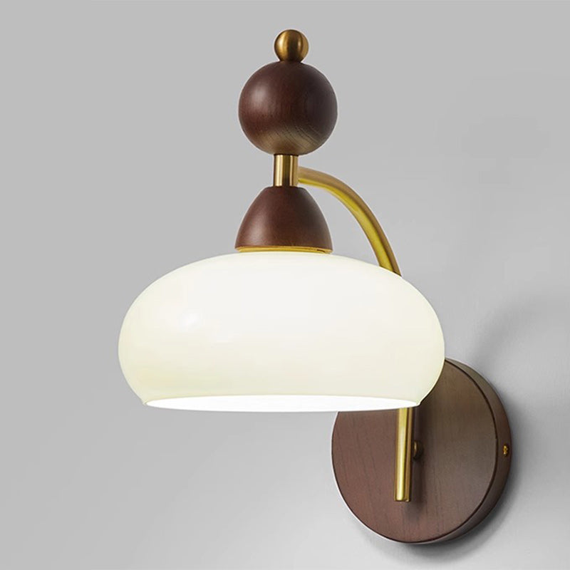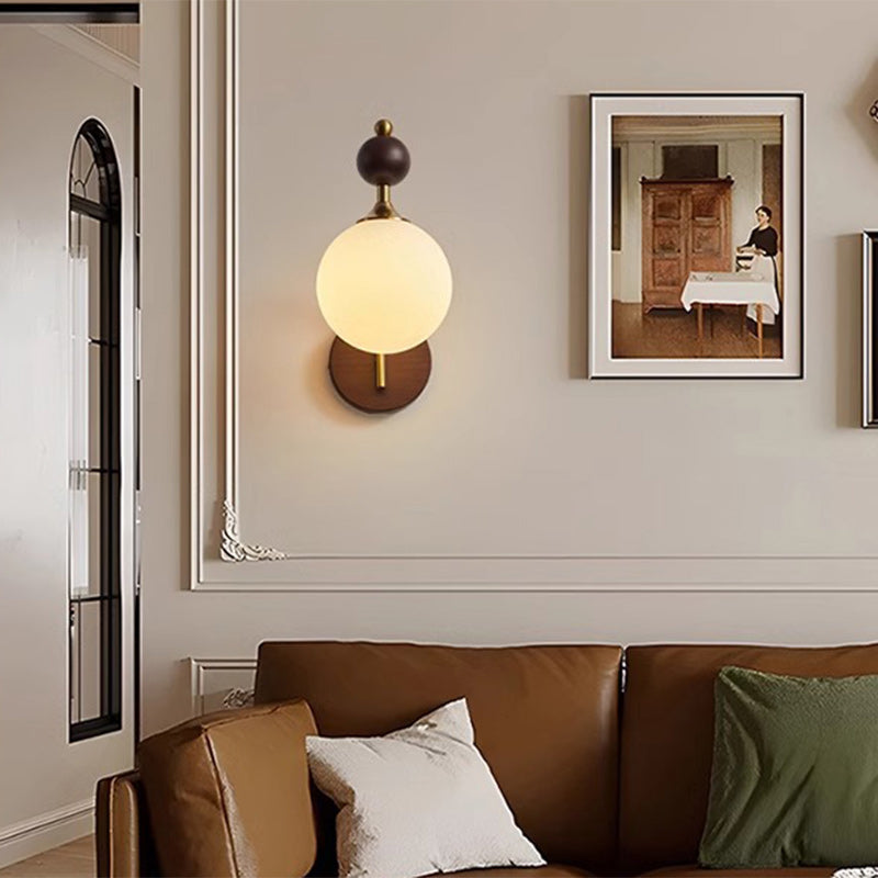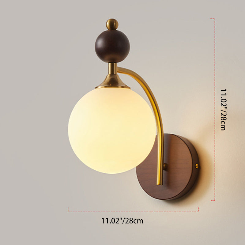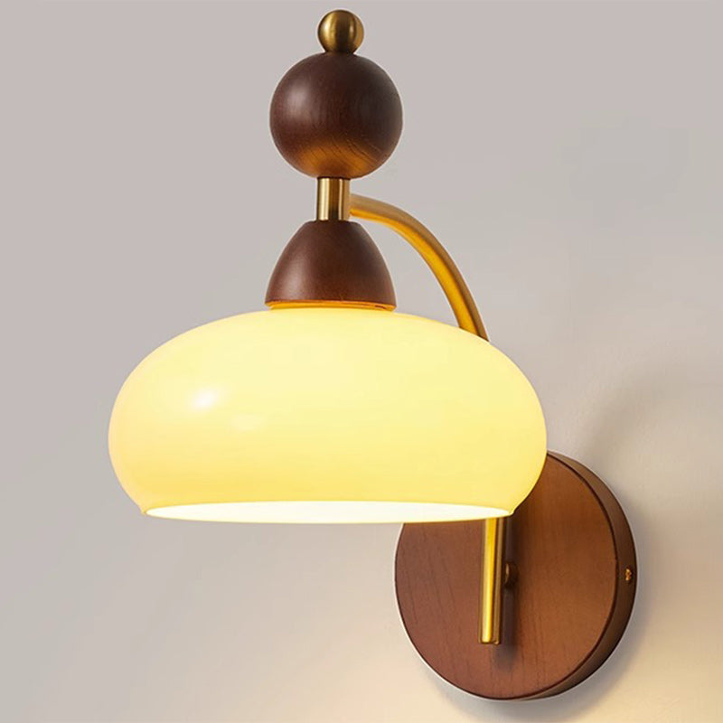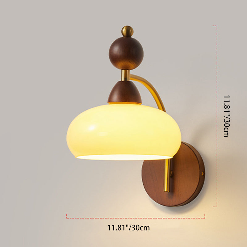مصباح حائطي عصري بتصميم عتيق مستدير من الزجاج، مصنوع من خشب الدردار، 1 مصباح حائطي لغرفة المعيشة