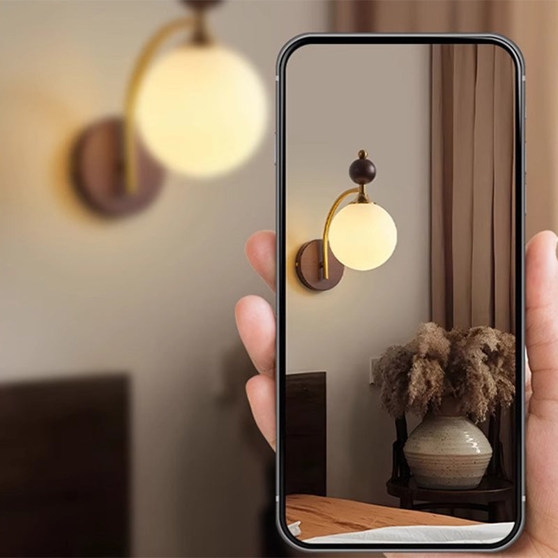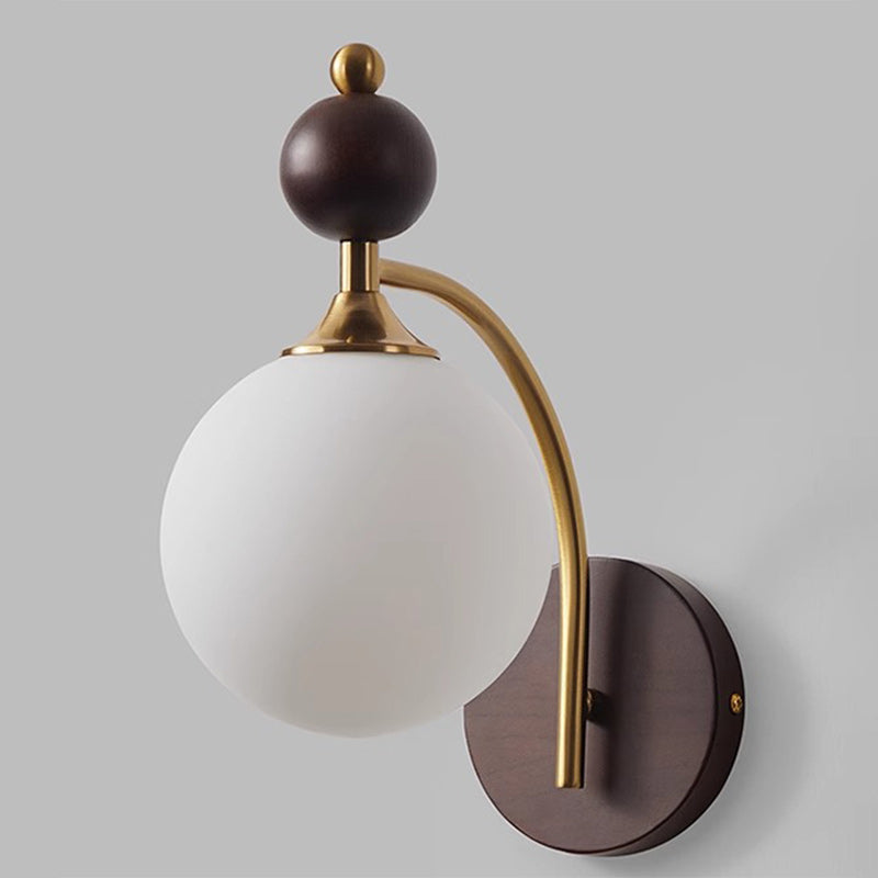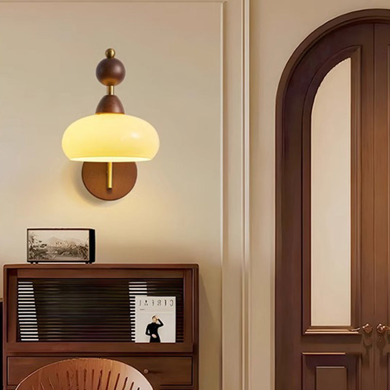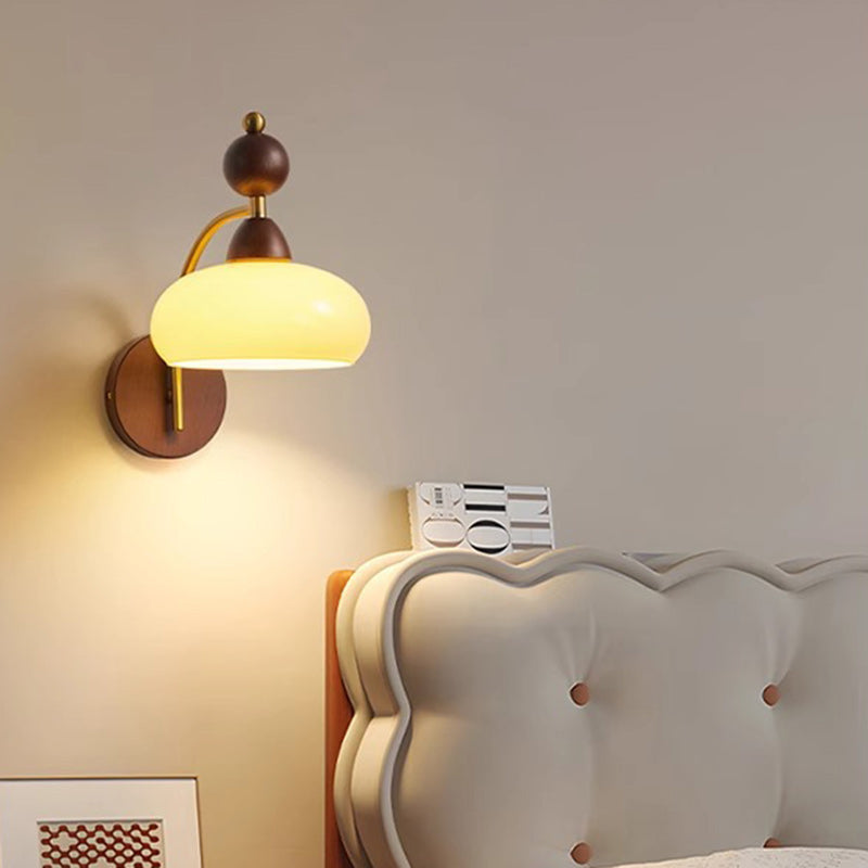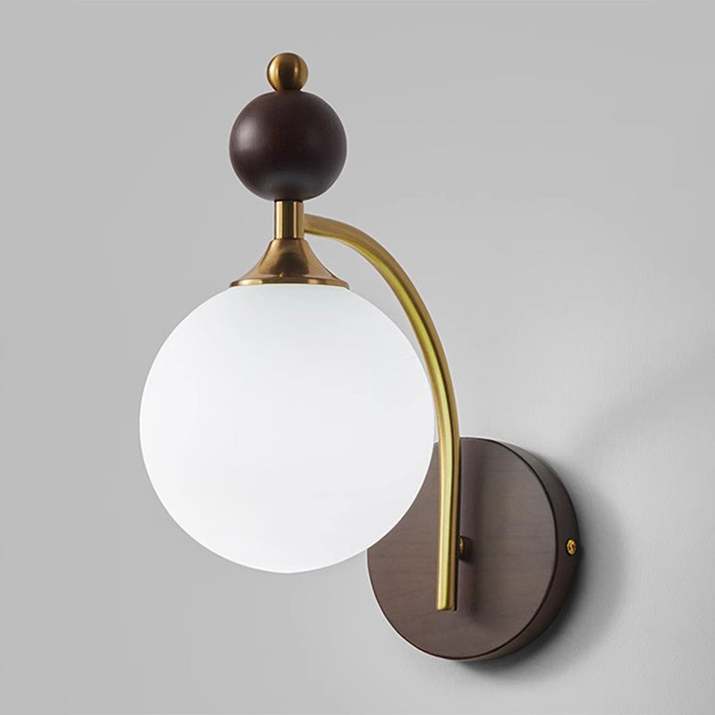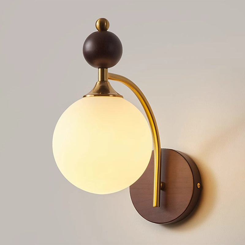 مصباح حائطي عصري بتصميم عتيق مستدير من الزجاج، مصنوع من خشب الدردار، 1 مصباح حائطي لغرفة المعيشة