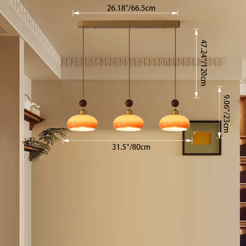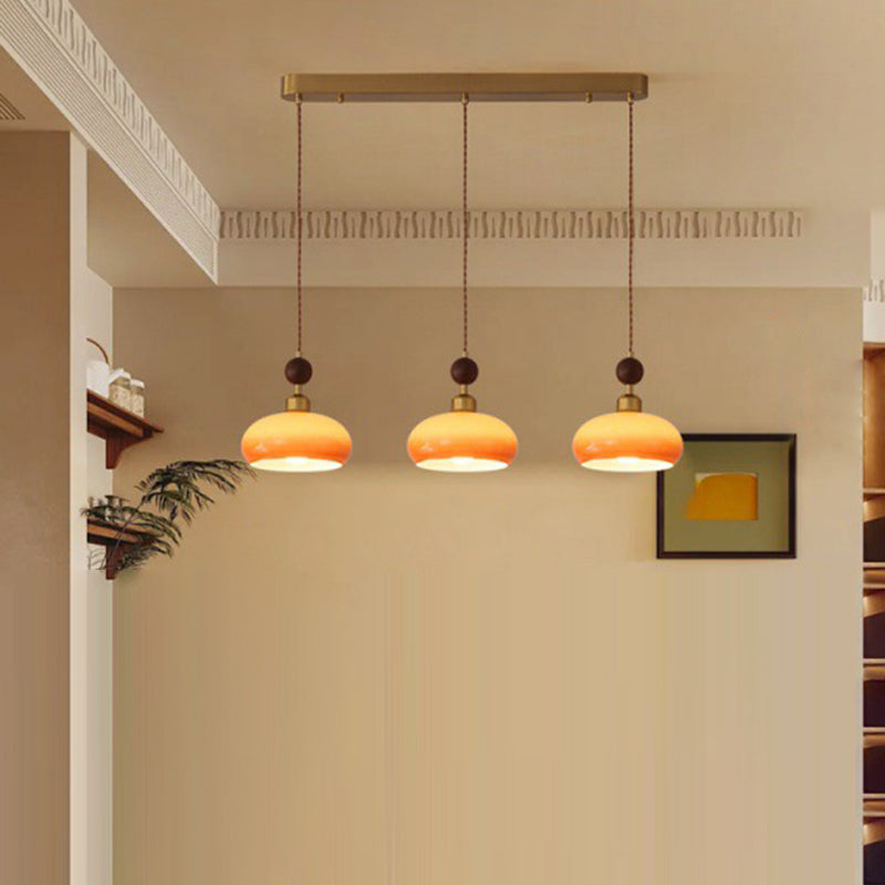 ثريا جزيرة ضوء 1/3 ضوء لغرفة الطعام بتصميم معاصر على شكل كرة مستديرة بيضاوية من الخشب والزجاج