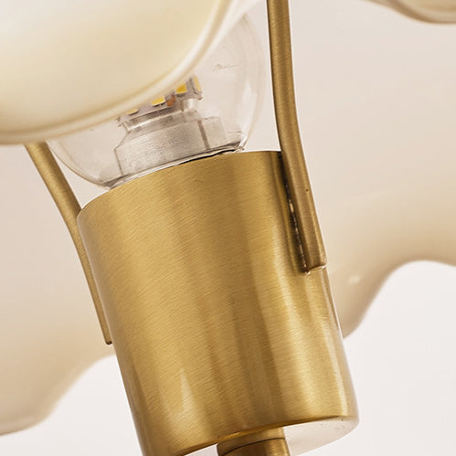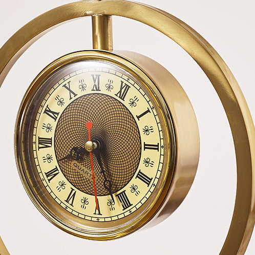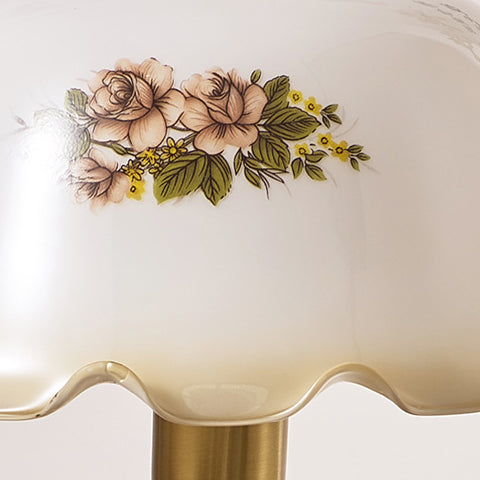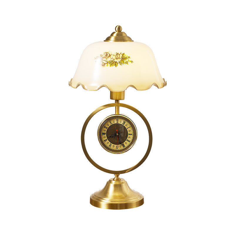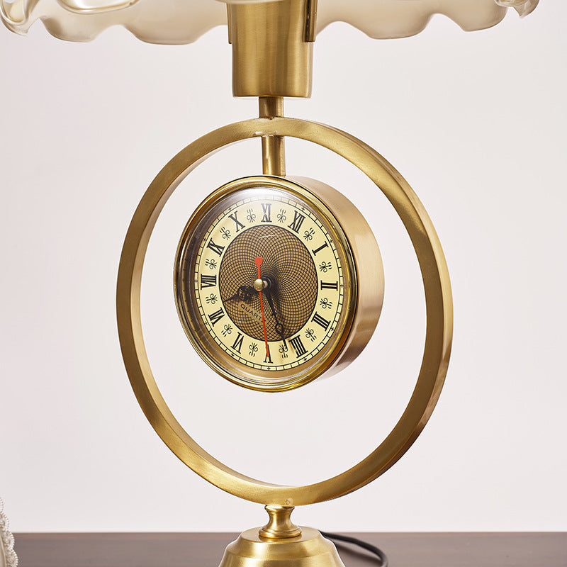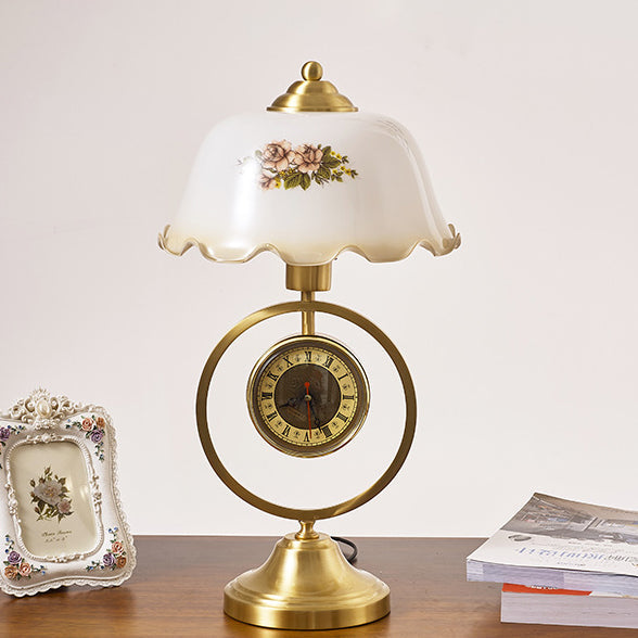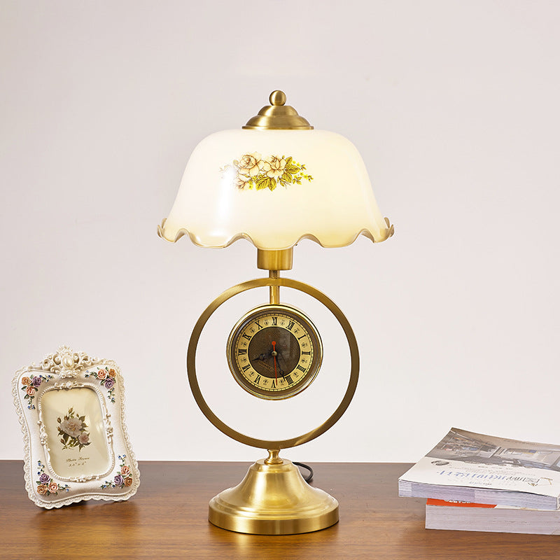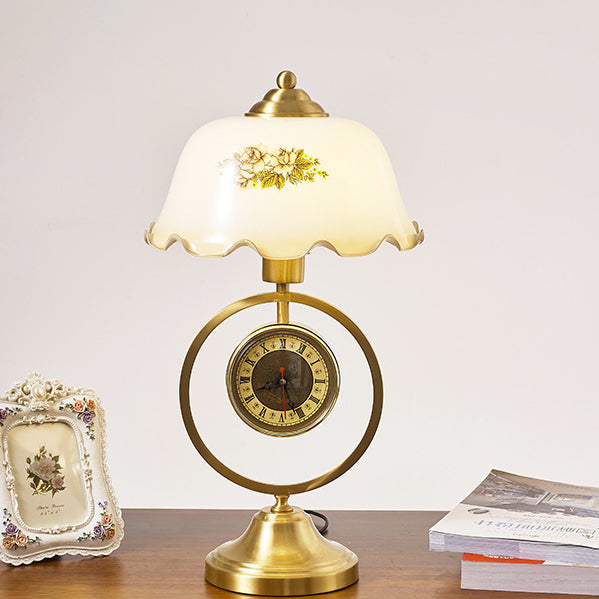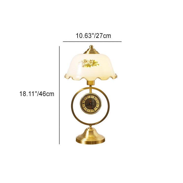 Contemporary Retro Ruffled Glass Shade Antique Copper Clock Base 1-Light Table Lamp For Home Office