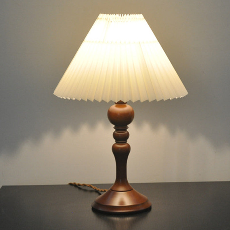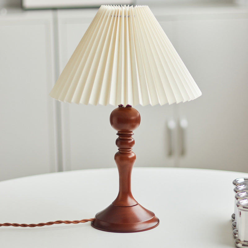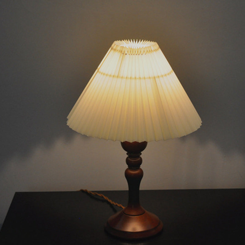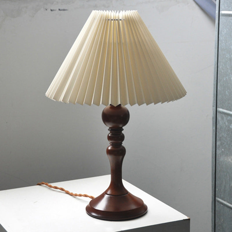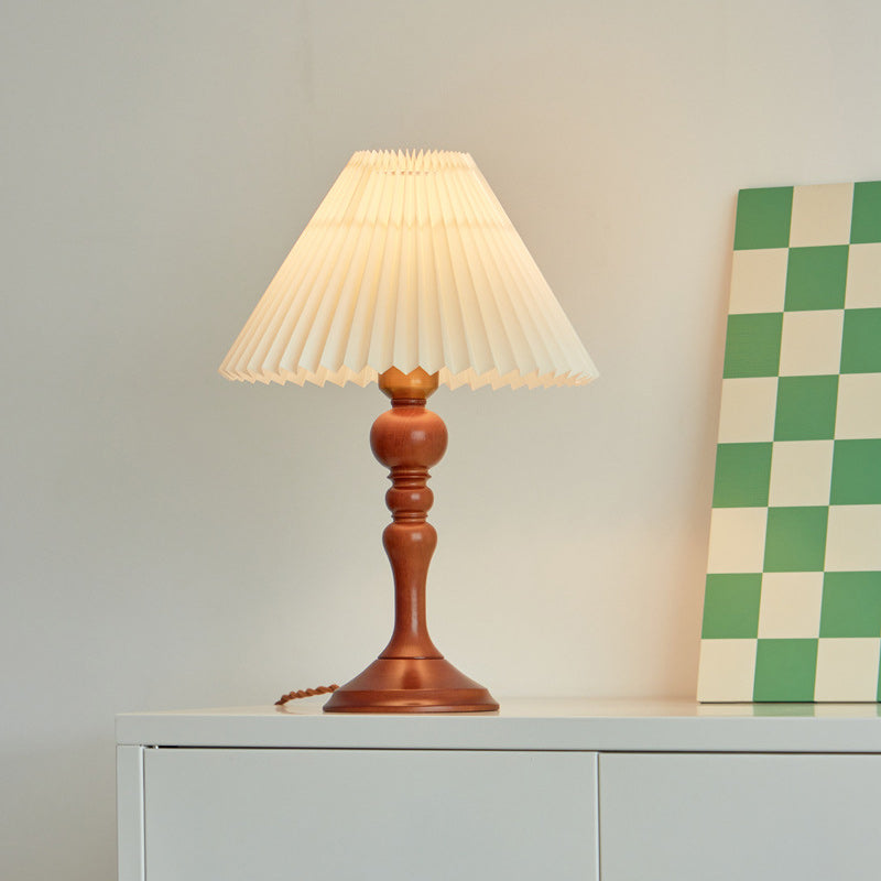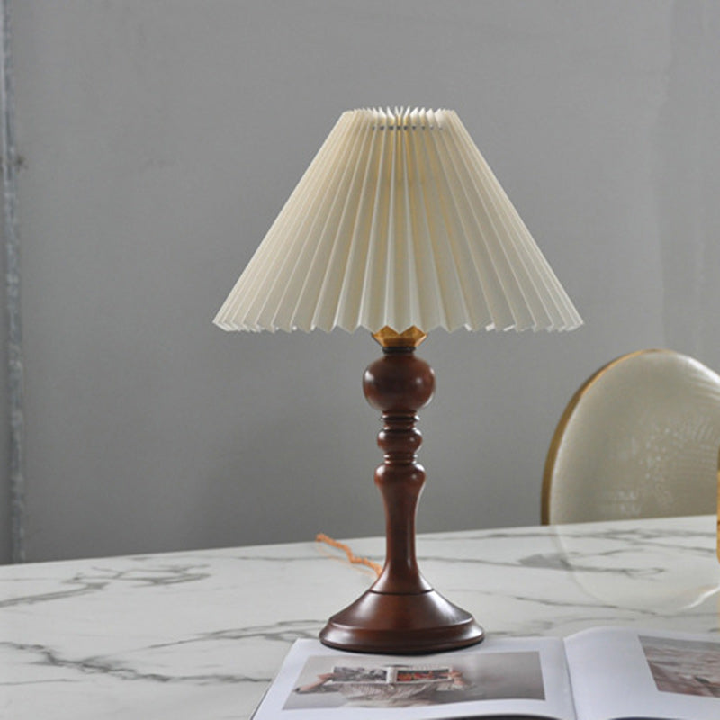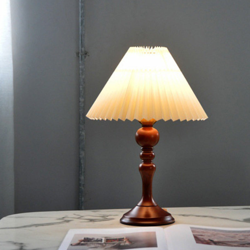 Contemporary Retro Solid Wood Base Pleated Fabric Shade 1-Light Table Lamp For Living Room