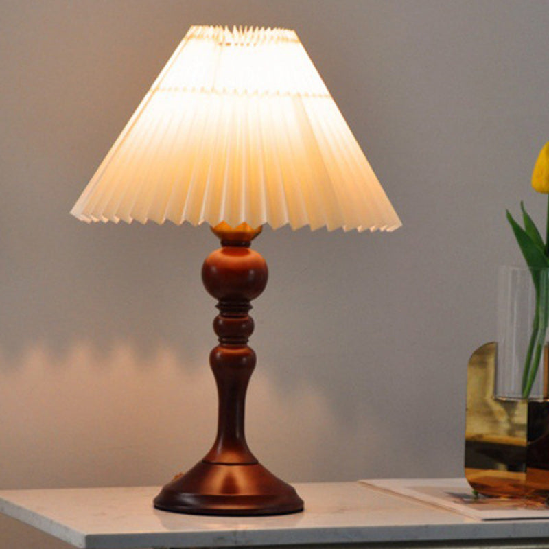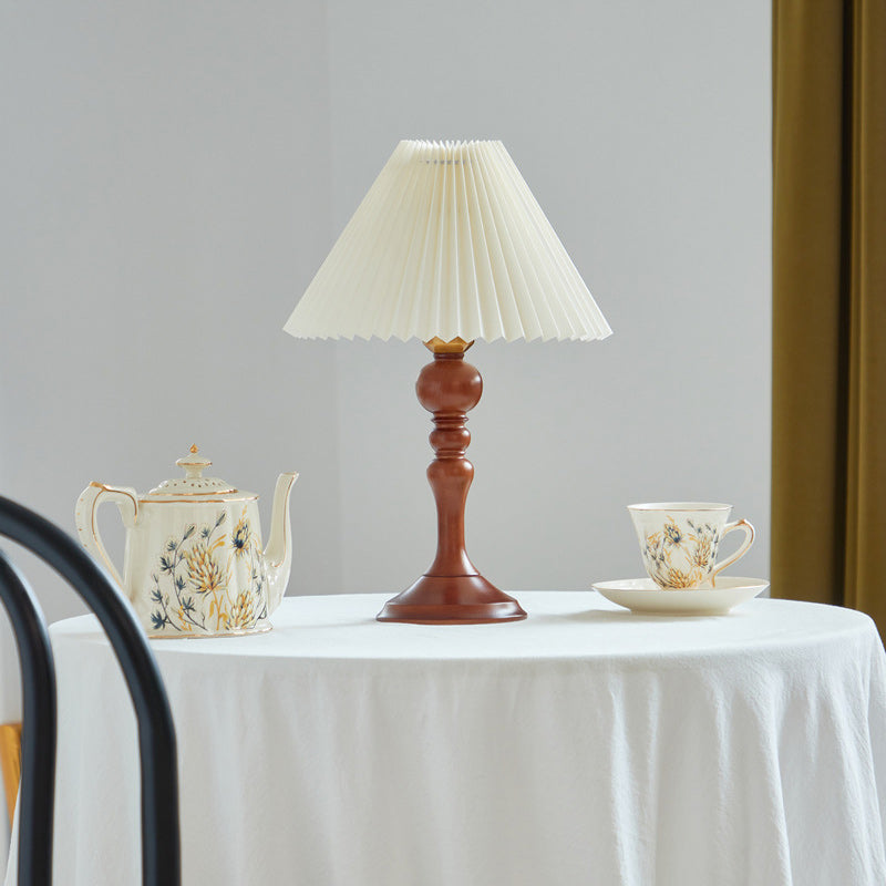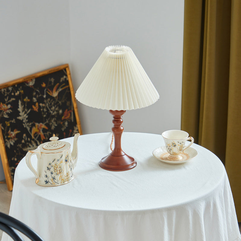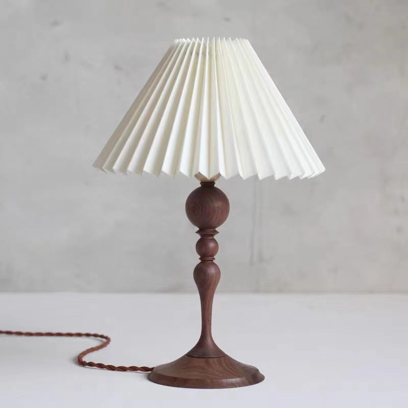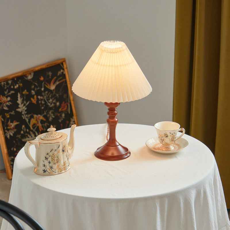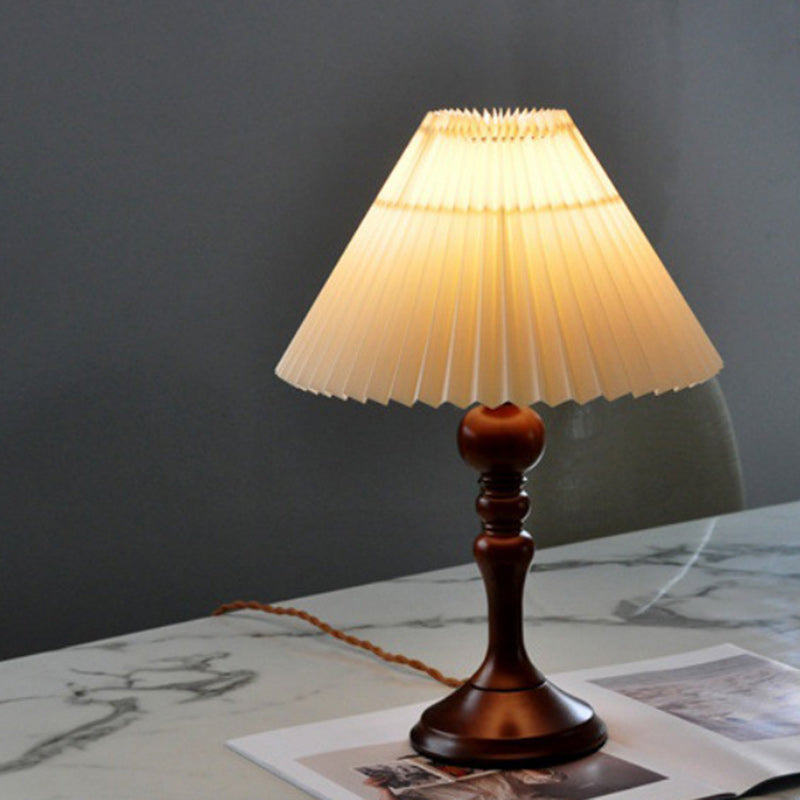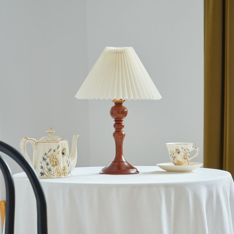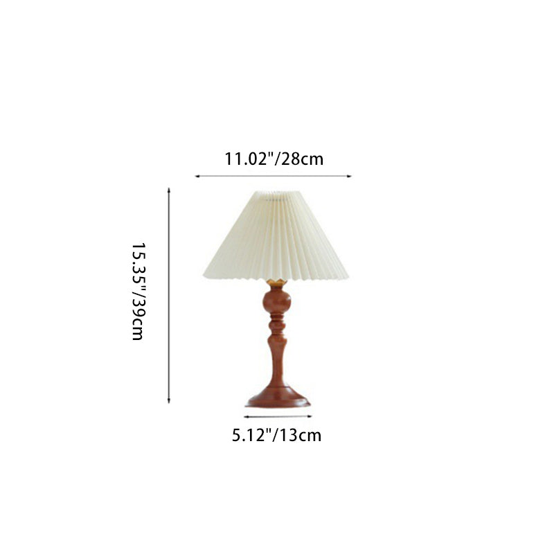 Contemporary Retro Solid Wood Base Pleated Fabric Shade 1-Light Table Lamp For Living Room