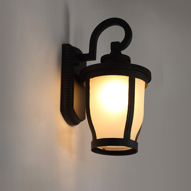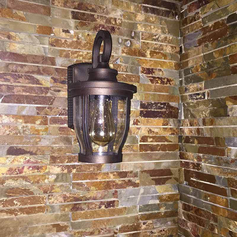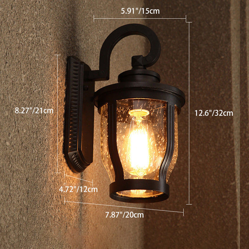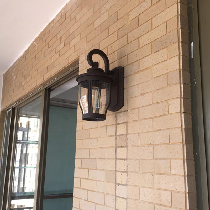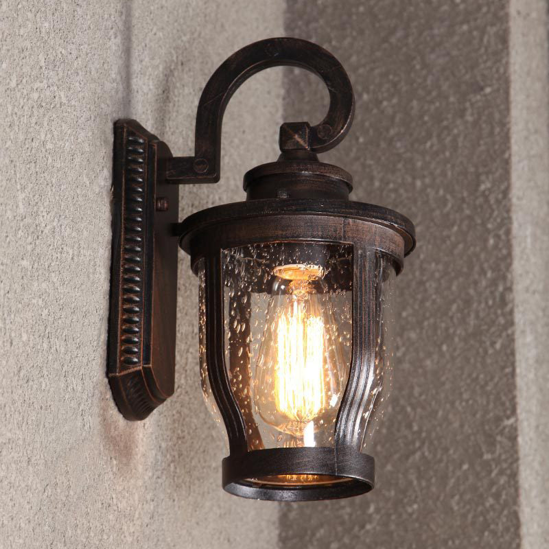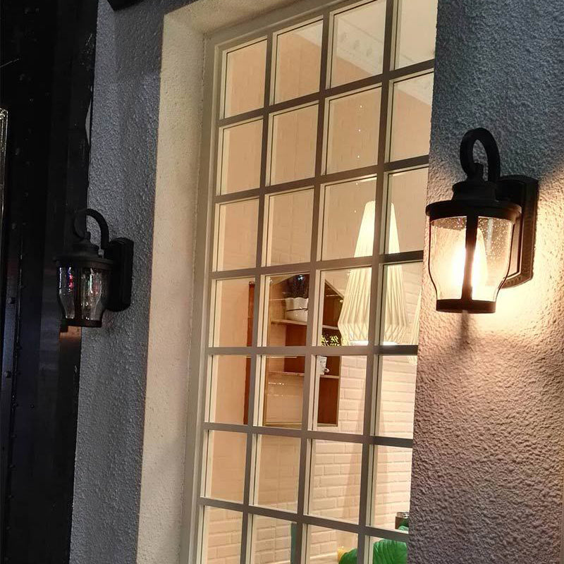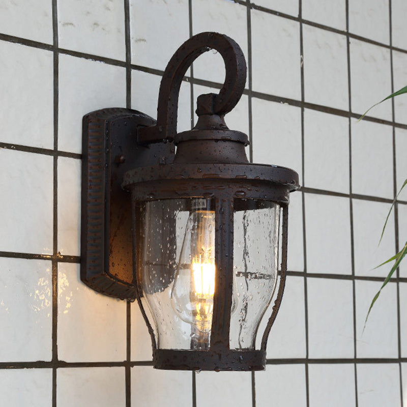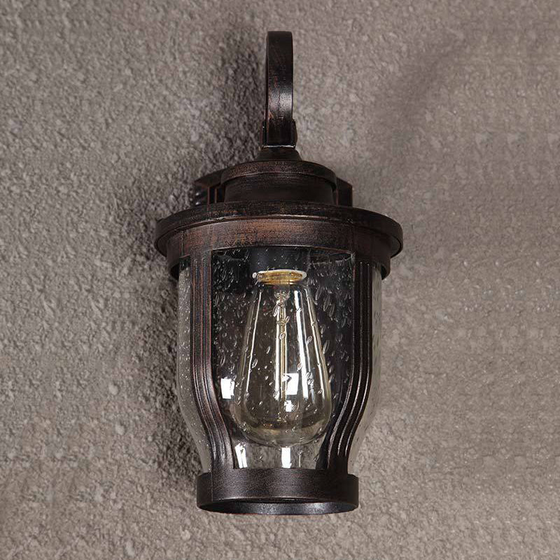 مصباح حائط معاصر بتصميم عتيق مقاوم للماء ومزين بزهرة مطر وزجاج مصنفر وألومنيوم مزود بإضاءة واحدة للفناء الخارجي