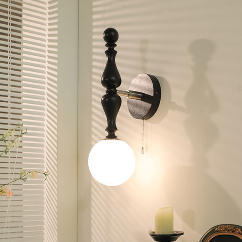مصباح حائط معاصر بتصميم ريترو مصنوع من الخشب والألومنيوم والزجاج مزود بكرات زجاجية ومصباح واحد لغرفة النوم