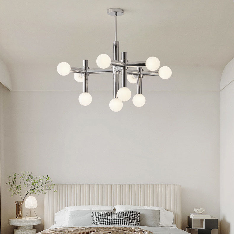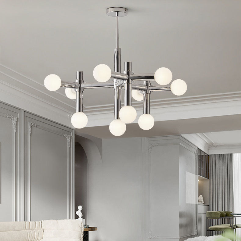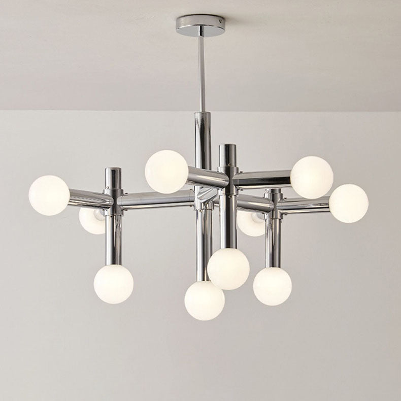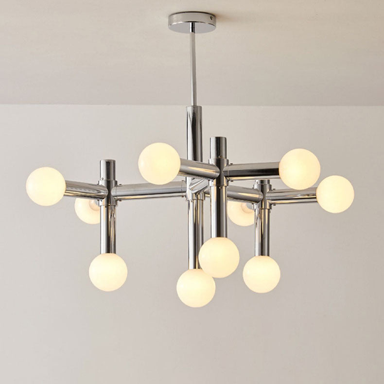 ثريا معاصرة على الطراز الاسكندنافي، مصنوعة من الحديد والألومنيوم والزجاج، بعشرة مصابيح لغرفة المعيشة