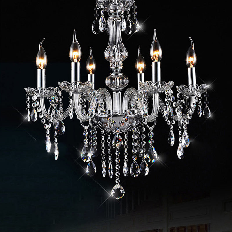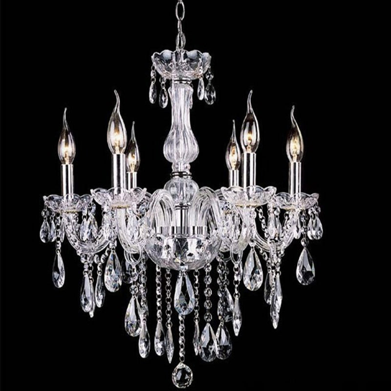 ثريا معاصرة على شكل فرع إسكندنافي، مصنوعة من الكريستال والزجاج والمعدن، بستة مصابيح لغرفة المعيشة