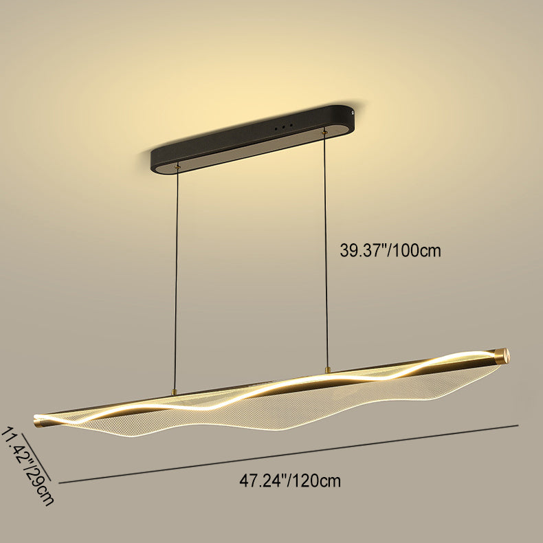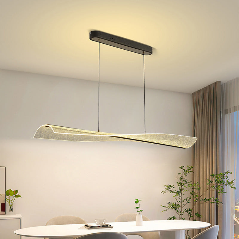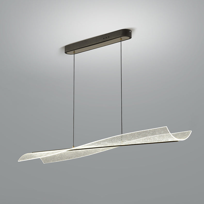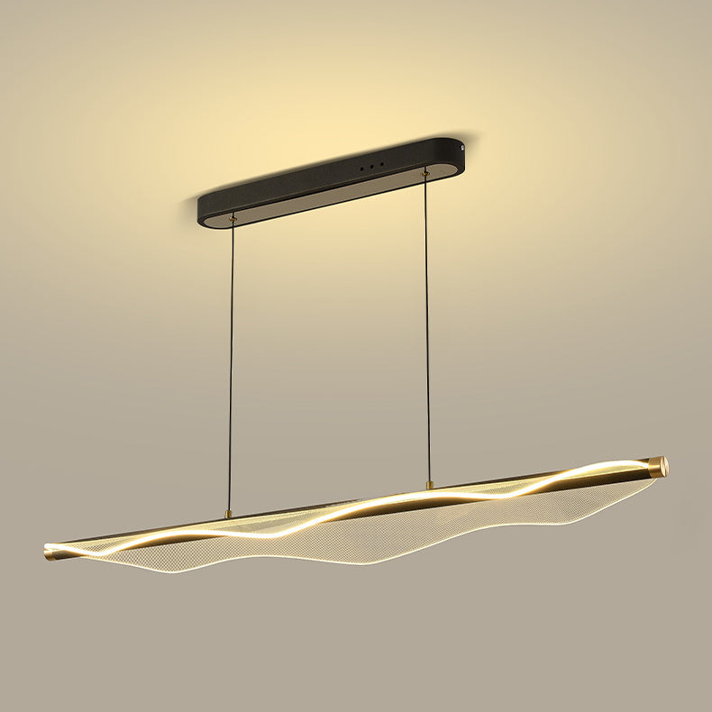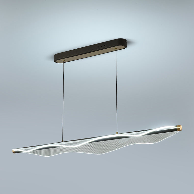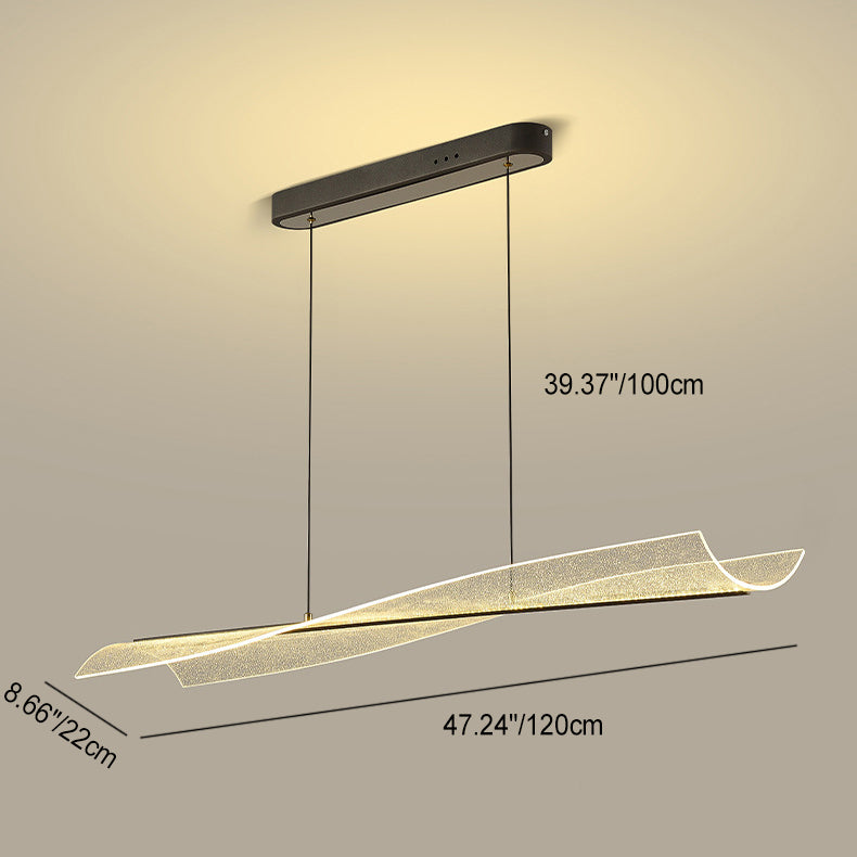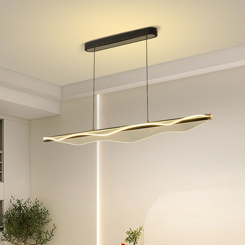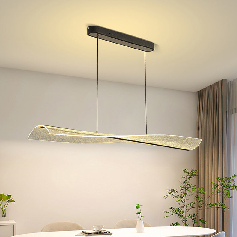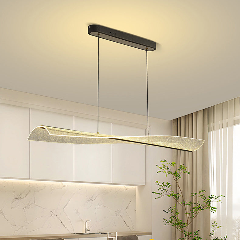 ثريا جزيرة من الحديد والألومنيوم والأكريليك بتصميم إسكندنافي معاصر، منحنية وطويلة وغير منتظمة، لغرفة المعيشة