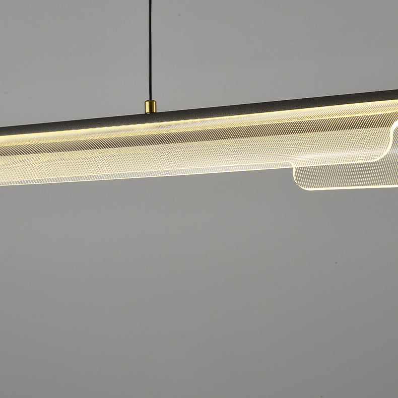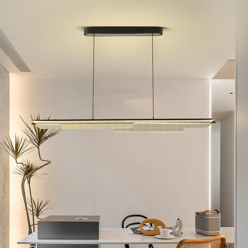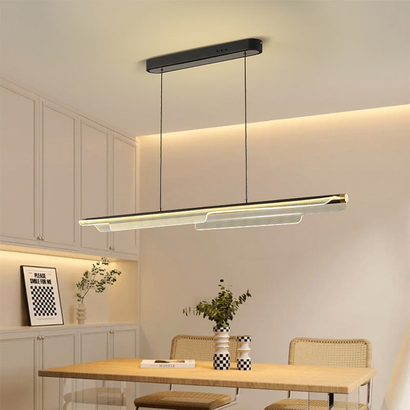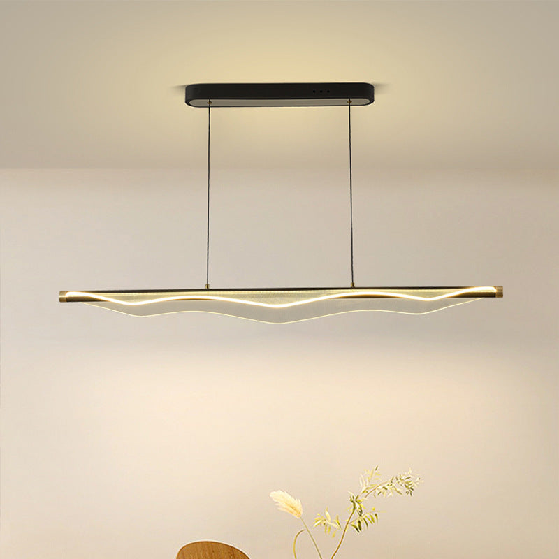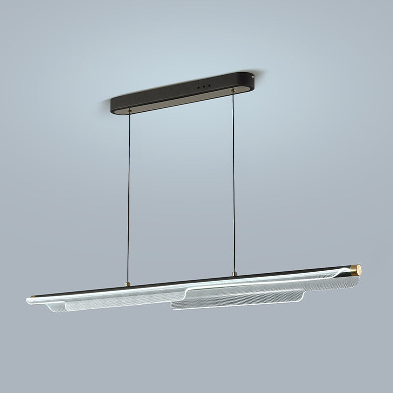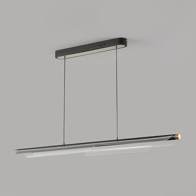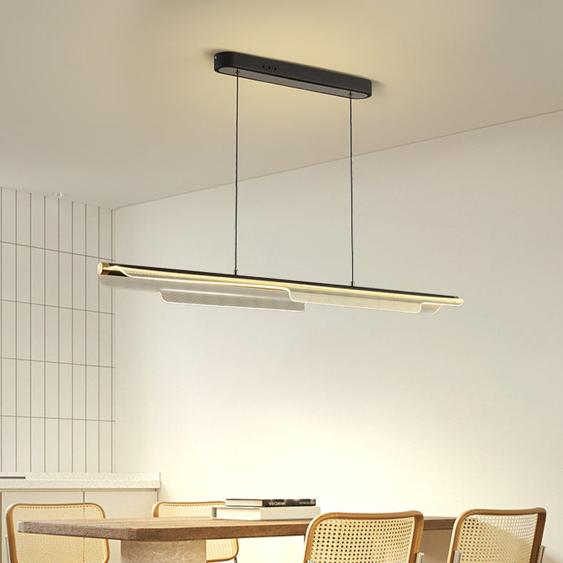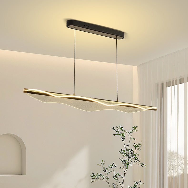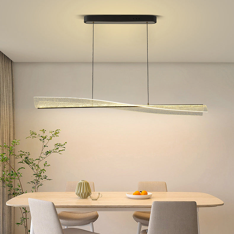 ثريا جزيرة من الحديد والألومنيوم والأكريليك بتصميم إسكندنافي معاصر، منحنية وطويلة وغير منتظمة، لغرفة المعيشة