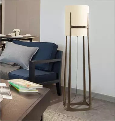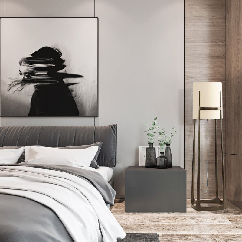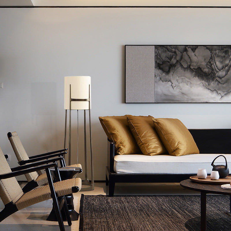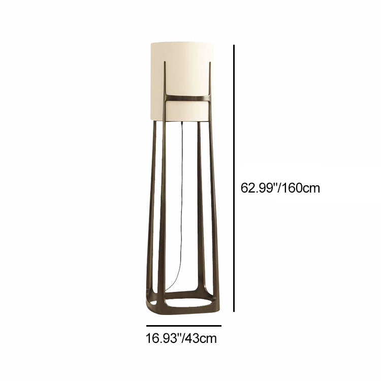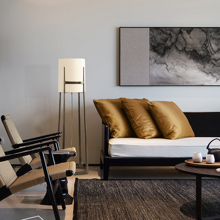 Contemporary Scandinavian Cylinder Fabric Lampshade Iron Base 1 - Light Standing Floor Lamp For Living Room