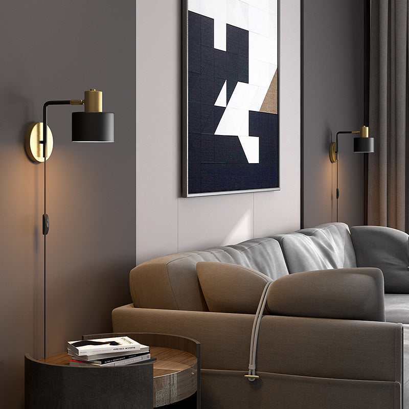 مصباح حائطي معاصر من الحديد الأسطواني الإسكندنافي لغرفة المعيشة، مزود بإضاءة واحدة