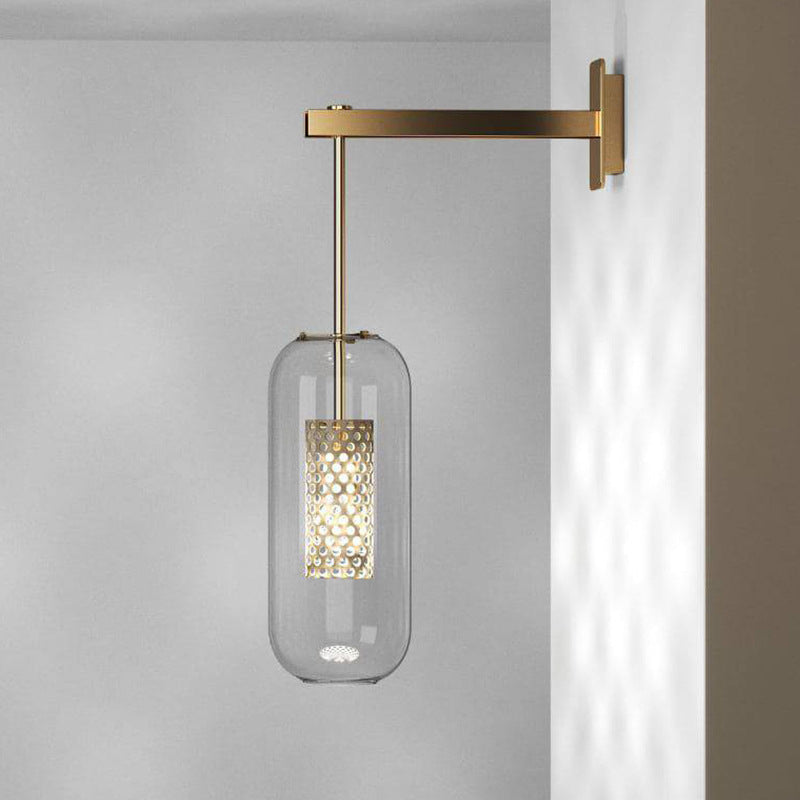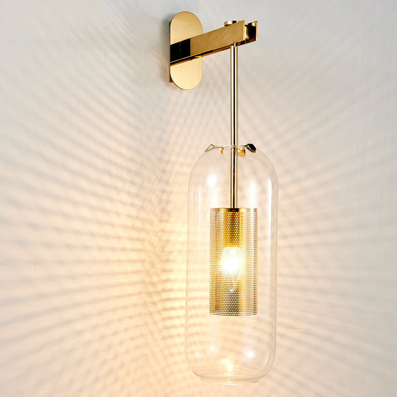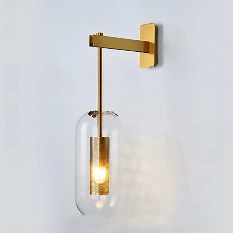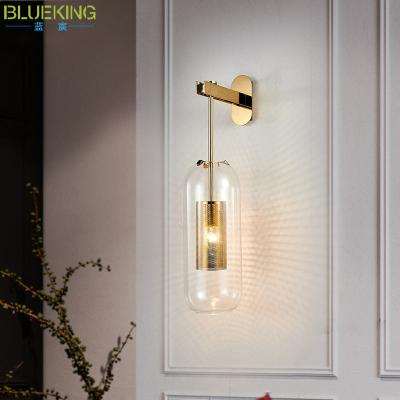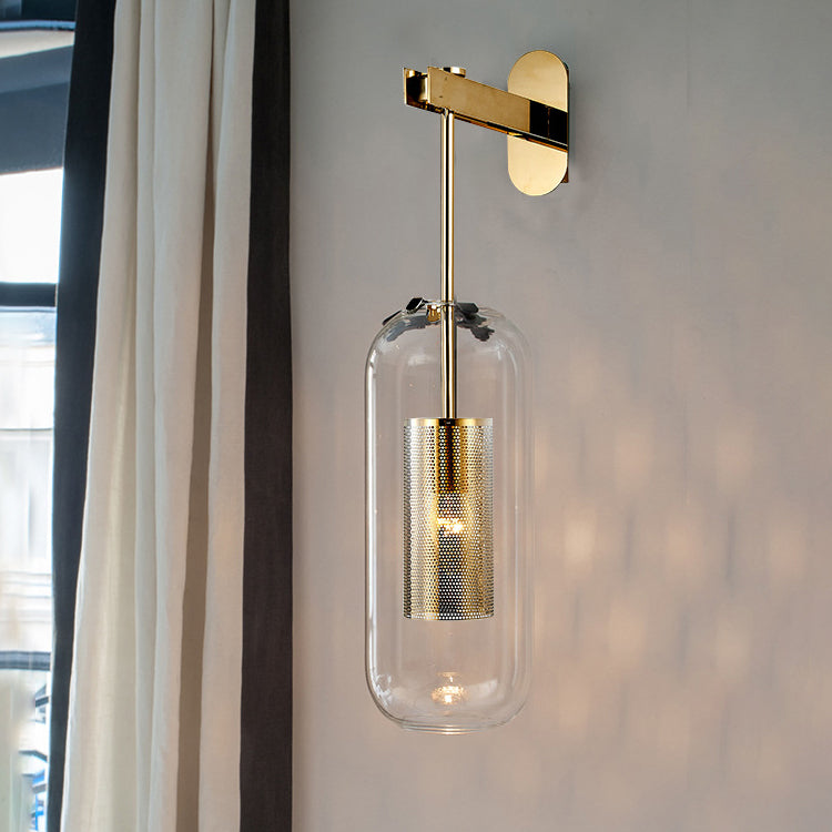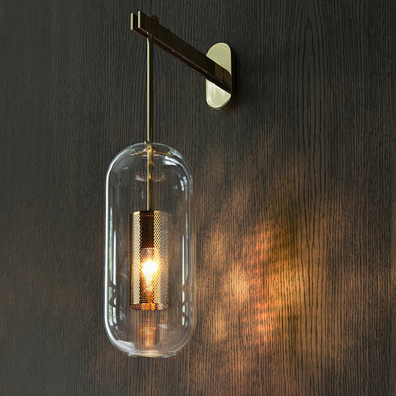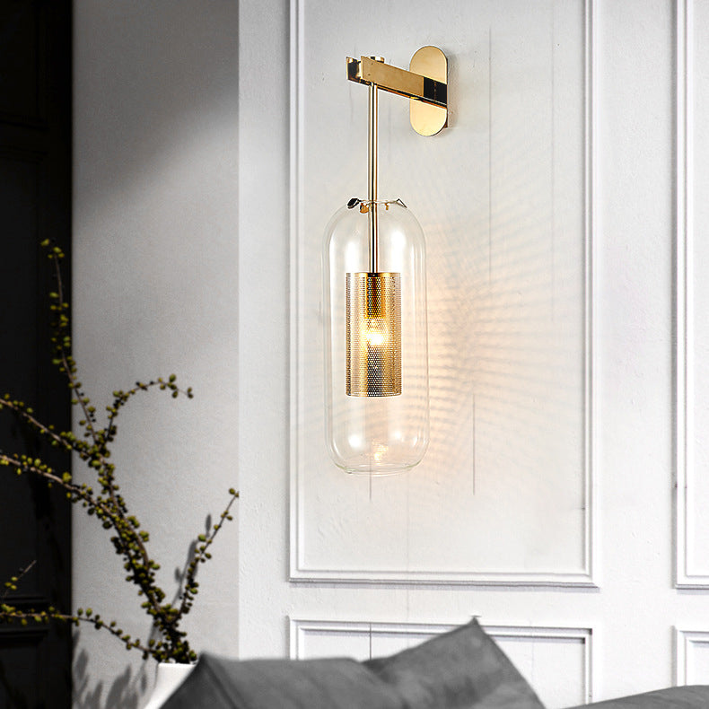 مصباح حائطي عصري إسكندنافي أسطواني بيضاوي من الفولاذ المقاوم للصدأ والزجاج بإضاءة واحدة لغرفة النوم