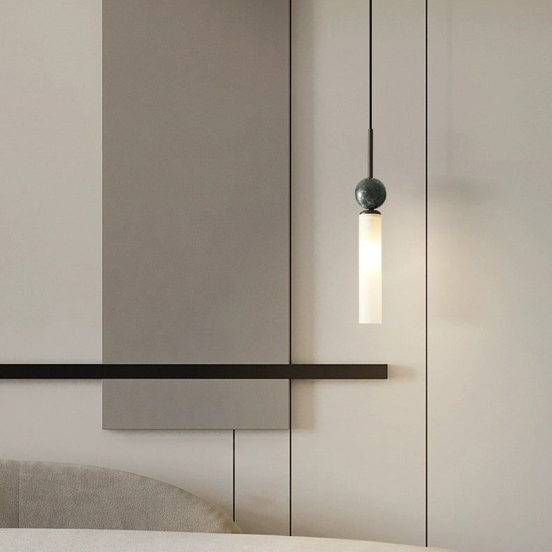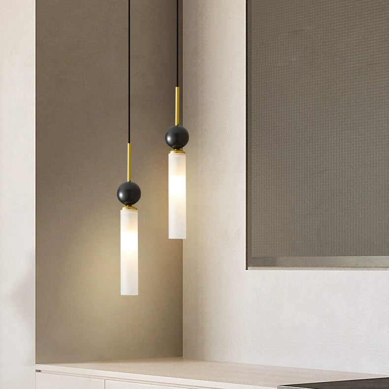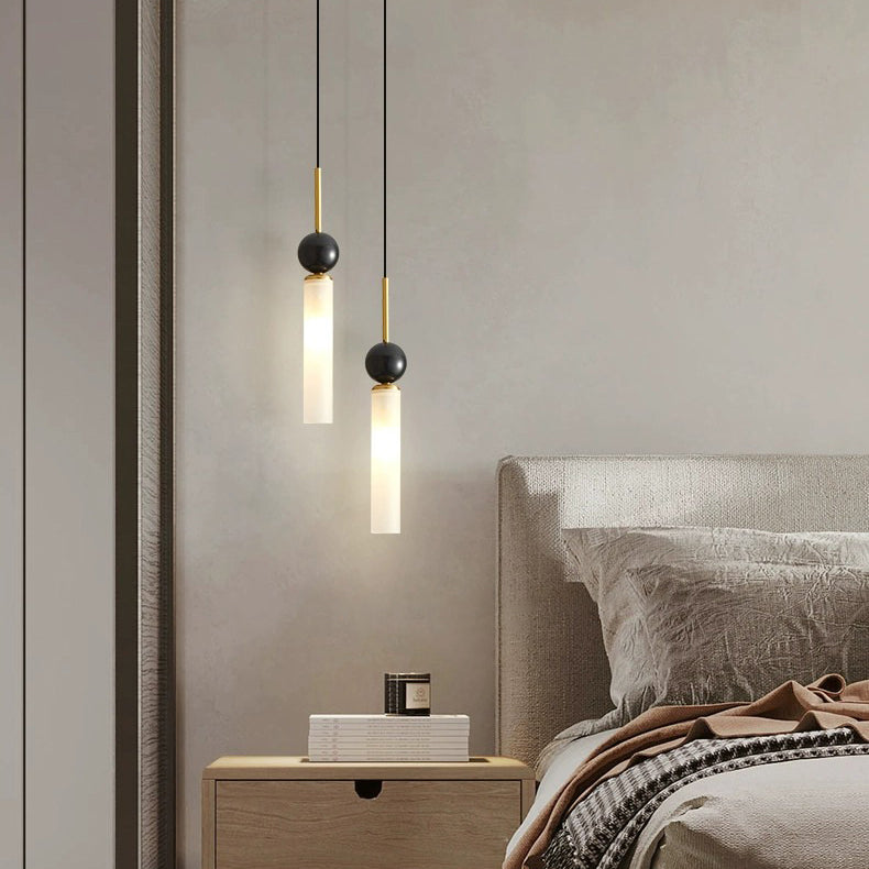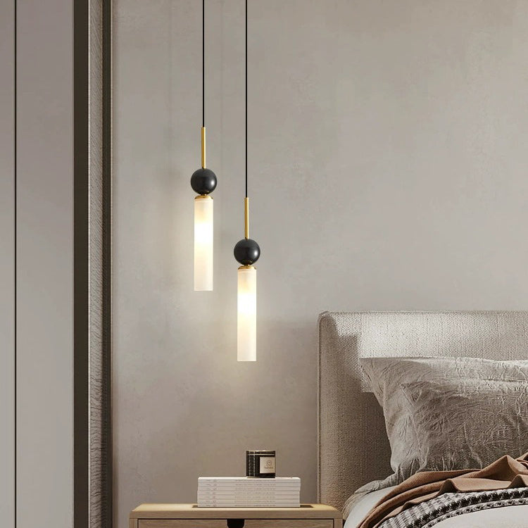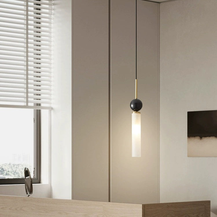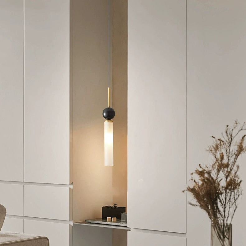 مصباح معلق عصري على شكل قرص كروي أسطواني إسكندنافي مصنوع من النحاس والرخام والأكريليك بنصف ضوء لغرفة النوم