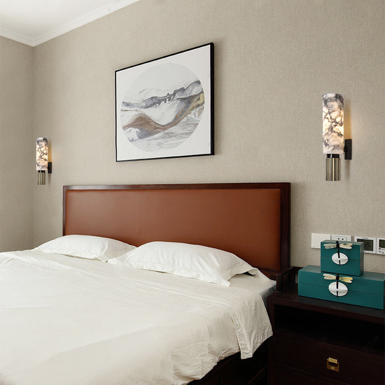 مصباح حائطي معاصر إسكندنافي أسطواني من النحاس والحجر والحديد، مزود بإضاءة واحدة، لغرفة النوم