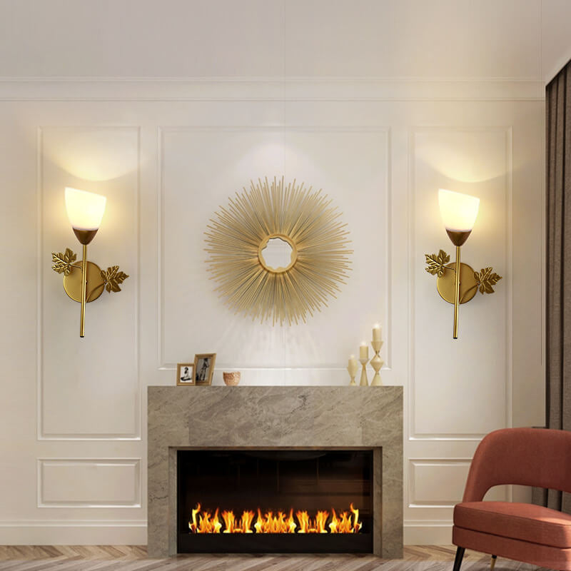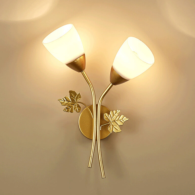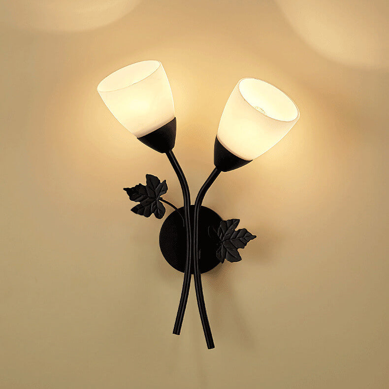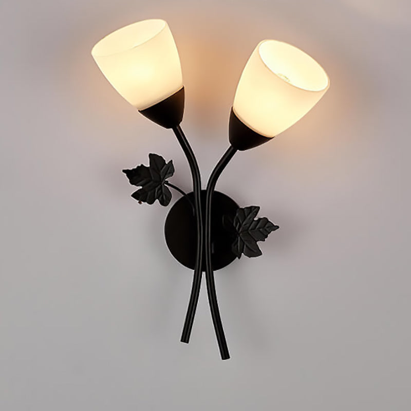 مصباح حائطي معاصر بتصميم إسكندنافي زهري مصنوع من الحديد والزجاج بنصف ضوء لغرفة المعيشة