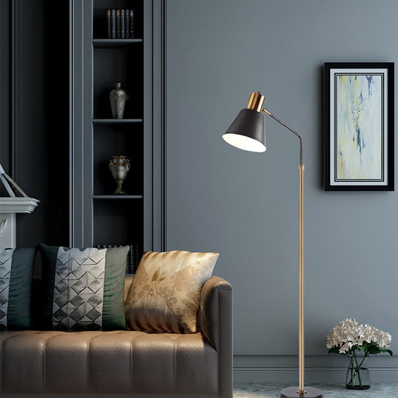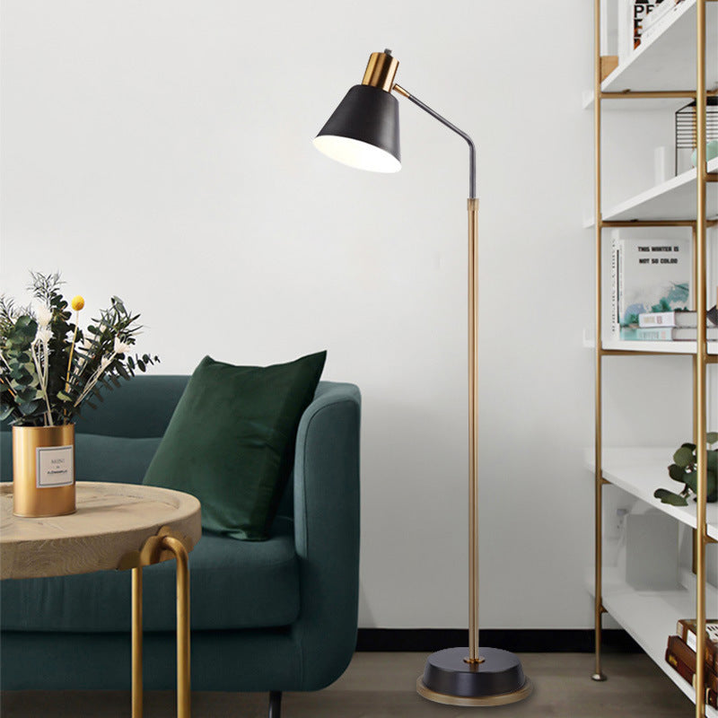 Contemporary Scandinavian Hardware Conical Shade 1-Light Standing Floor Lamp For Bedroom